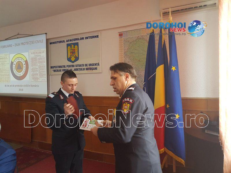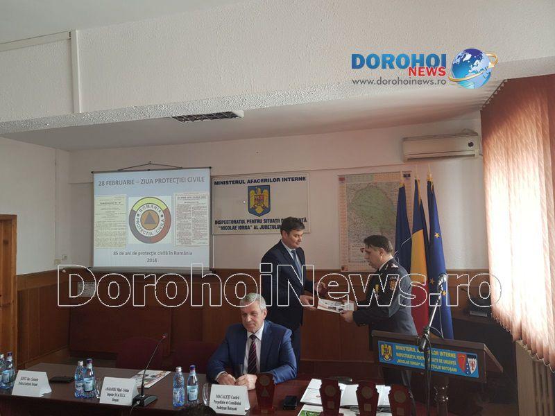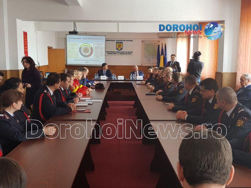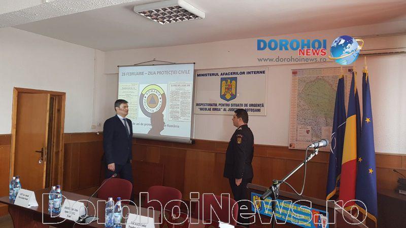 Angajaţii Inspectoratului pentru Situaţii de Urgenţă “Nicolae Iorga” al Judeţului Botoşani au marcat, astăzi, 85 de ani de la înfiinţarea Protecţiei Civile în România.