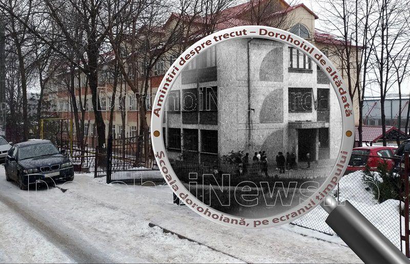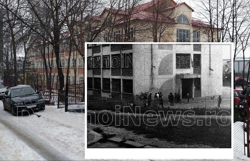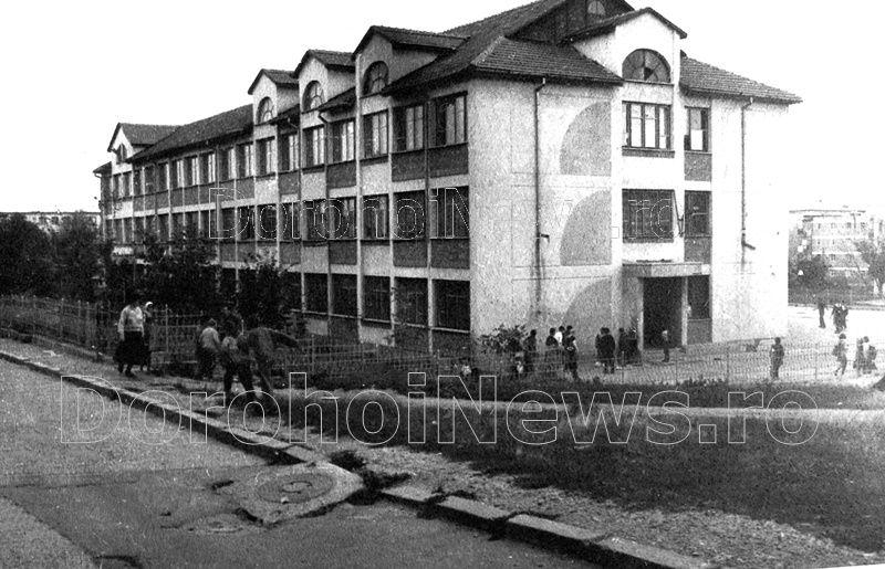 Fotografia pe care v-o prezentăm este o imagine a şcolii din primii ani de la înfiinţare – proiecţia arhitecturală respectand standardele tipizate ale timpului -, ilustrând înfăţişarea acesteia, care poate aduna multiple amintiri din partea foştilor elevi, ducând la nostalgii, evocări, sentimente de apartenenţă, datorită şi elementului de reper în geografia oraşului: intrarea dinspre Botoşani, plasarea în zona industrială amintită, poziţionarea ei într-o răscruce, cu multe deschideri şi invitaţii la cunoaşterea oraşului.