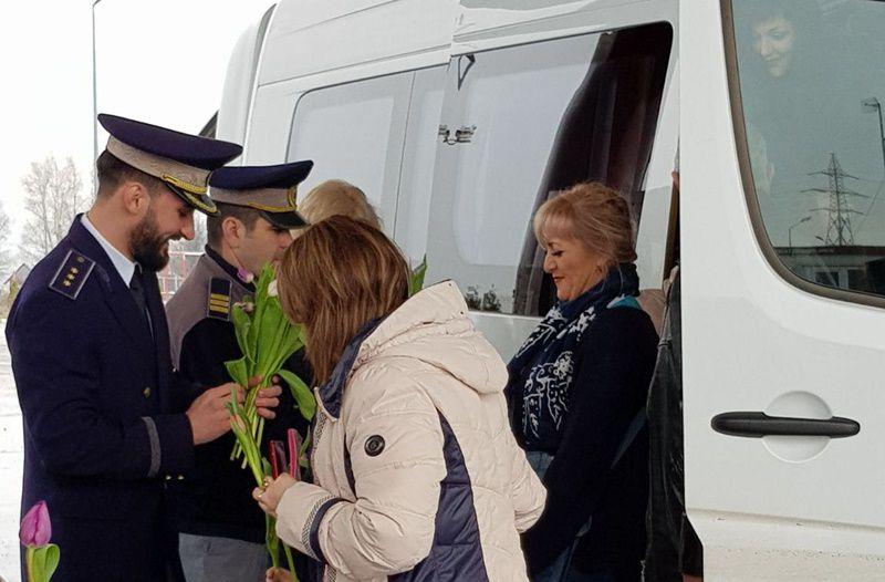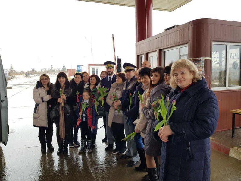 Femeile care au intrat sau ieşit din ţară joi au fost „amendate” cu flori la frontieră.