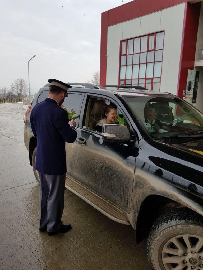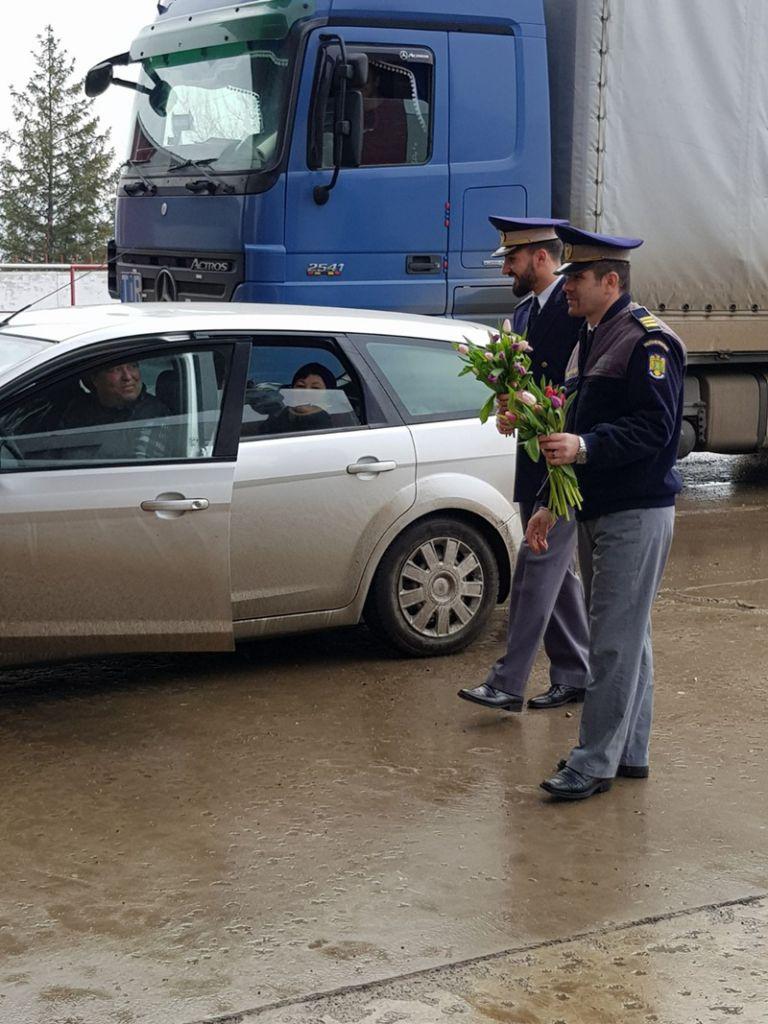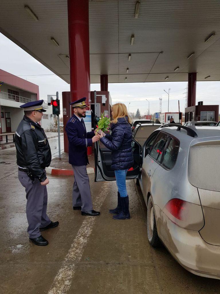 După efectuarea formalitatilor de frontiera, oamenii legii le-au oferit flori femeilor care s-au prezentat pentru efectuarea controlului la trecerea frontierei, atât pe sensul de intrare, cât şi pe cel de ieşire.