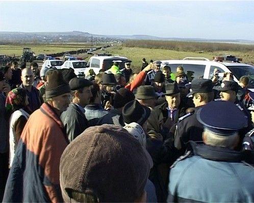 In ciuda masurilor de ordine severe, conflictul a degenerat in momentul in care tractoarele firmei Agraria din Radauti au inceput sa lucreze terenurile. Atunci, satenii au fugit dupa tractoare, iar paznicii de la FGM au reactionat incercind sa ii opreasca. Pentru asta, lucratorii FGM au folosit si doua spra-uri lacrimogene.