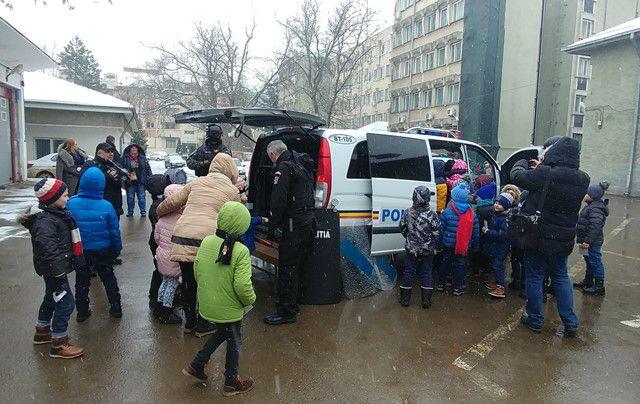 Pentru această zi festivă, au fost pregătite laboratorul mobil, folosit de criminalişti pentru realizarea cercetării locului comiterii de infracţiuni, precum şi autospecialele aflate în dotarea poliţiştilor rutieri.