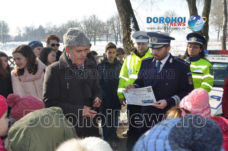 Totodată, a fost acordată și o diplomă de excelență din partea Biroului Rutier Dorohoi pentru prof. Roșca-Velea Alexandru, cel care a colaborat cu polițiștii rutieri zeci de ani și a coordonat ateliere de educație rutieră pentru elevi. (Andrei B.)
