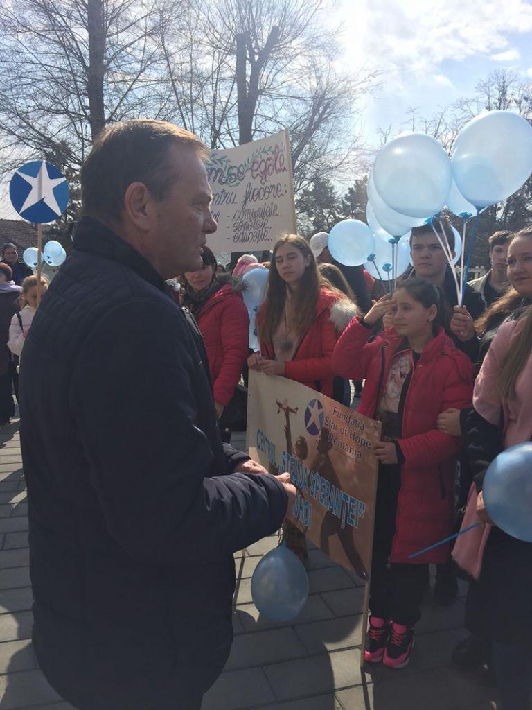 „Prima data am luat contactul cu activitățile realizate de Star of Hope cand am vizitat centrul impreuna cu colegii mei de facultate si am rămas impresionata de munca si implicarea specialiștilor in reabilitarea copiilor cu dizabilități. Auzind de activitatea pe care Fundația Star of Hope dorea sa o realizeze ne-am gândit ca impreuna putem sa aducem mai multă fericire pe fetele acestor copii dar totodata si copii din comunitatea noastră au ocazia sa participe la un eveniment deosebit si pot empatiza cu cei aflați in dificultate. Ma bucur nespus de mult pentru acest eveniment si ca Primaria, școala si părinți din Cordăreni m-au sprijinit in aceasta activitate. Impreuna astăzi am mărșăluit in semn de prietenele alaturi de copii cu nevoi speciale, le-am oferit dulciuri, baloane si alte surprize.” (Asistent Medical Comunitar Antonesei Angelica)