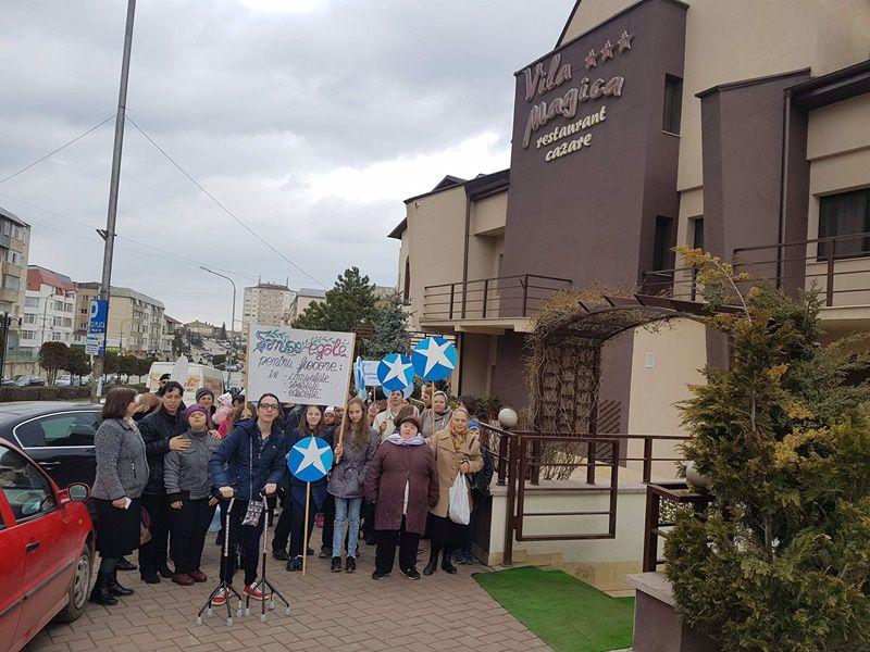 Primul popas a fost in fata Primăriei Municipului Dorohoi unde primarul Dorin Alexandrescu a avut un cuvint de încurajare si solidaritate pentru părinți, totodată a menționat faptul că asteaptă să serbăm impreuna deschiderea noului centru oferit de municialitate.