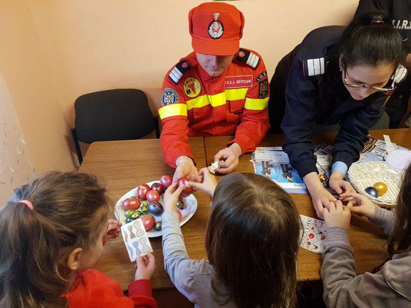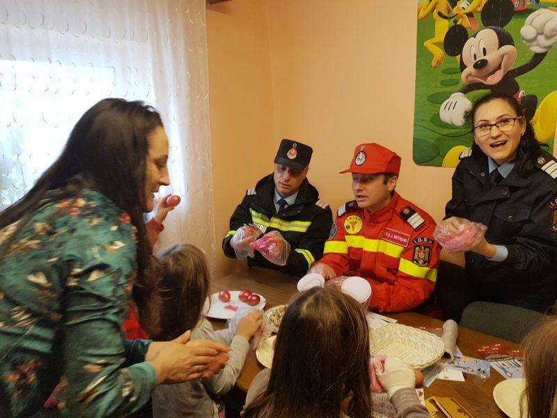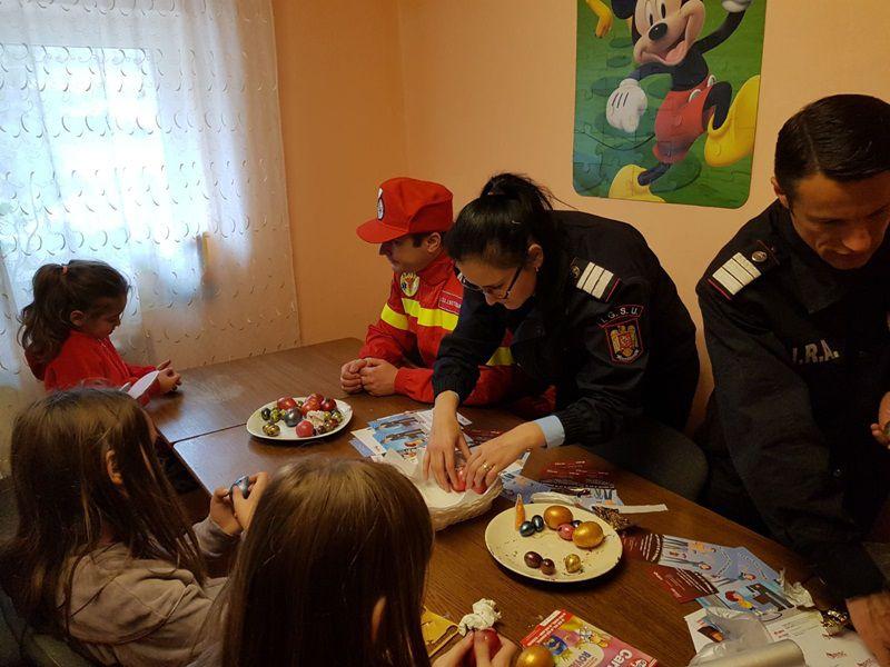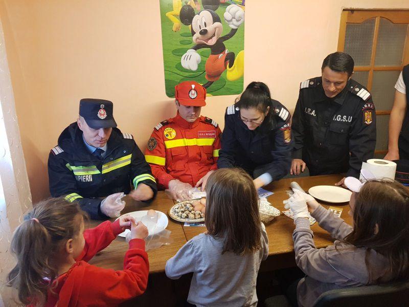 Și pentru că de pe masa de Paște nu pot lipsi alimentele tradiționale, pompierii au încondeiat ouă împreună cu locatarii „Casei Ruxandra”.