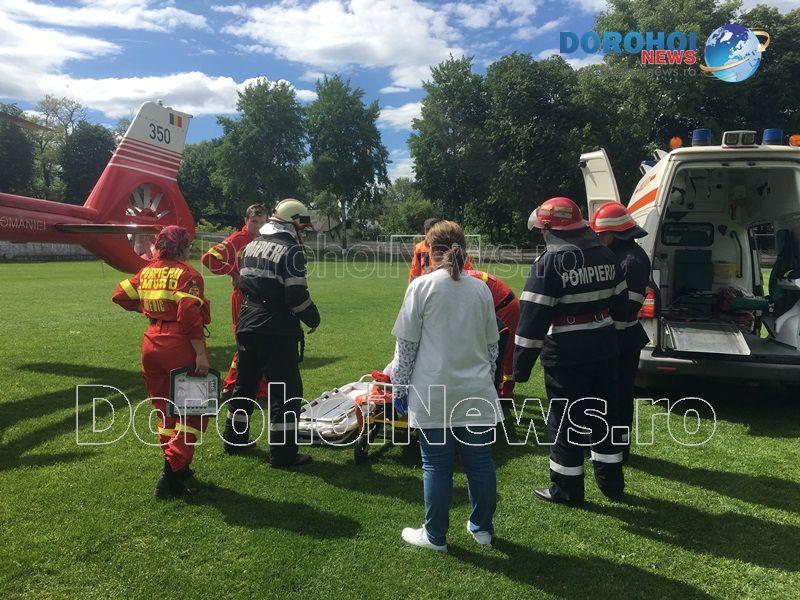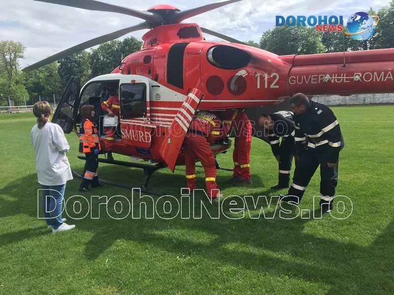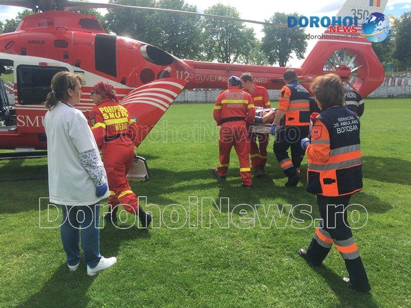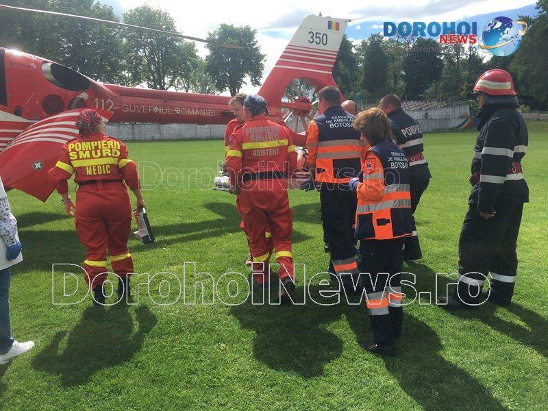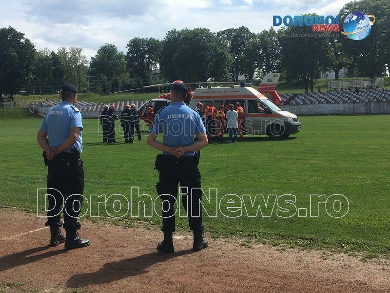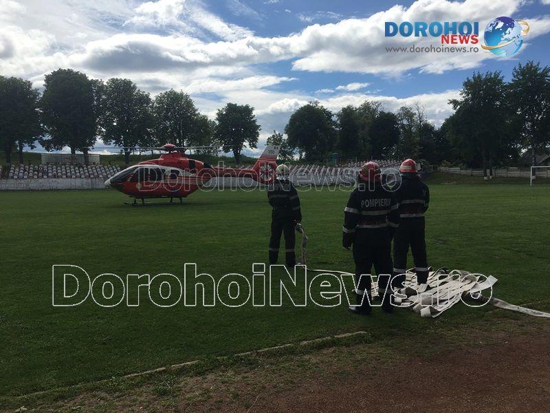 Aparatul de zbor a aterizat pe stadionul „1 Mai” din Dorohoi, în jurul orei 15:30, de unde l-a preluat pe bărbat, pentru a-l transporta la Iași. (Andrei B.)