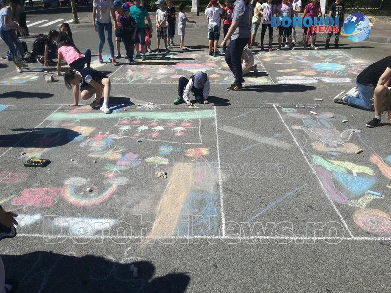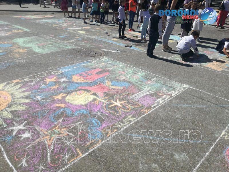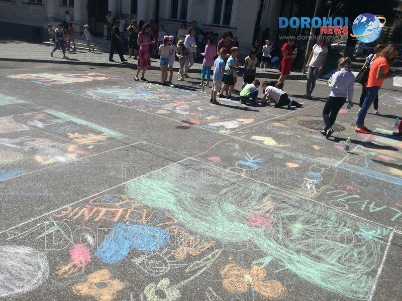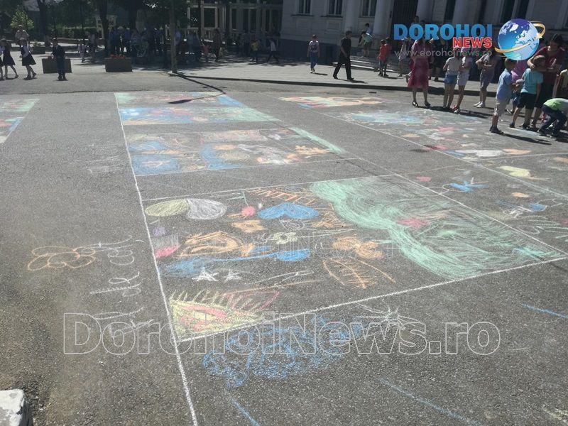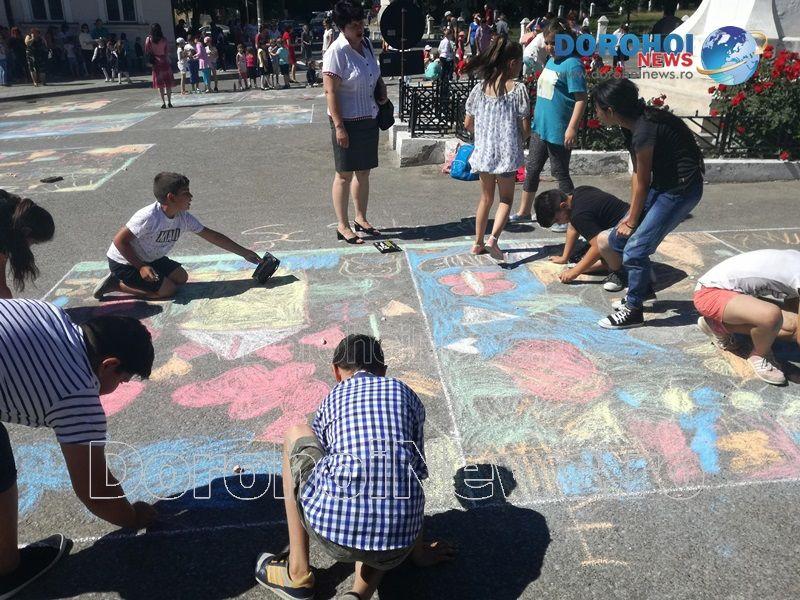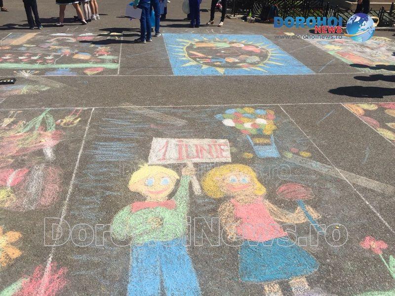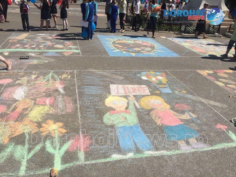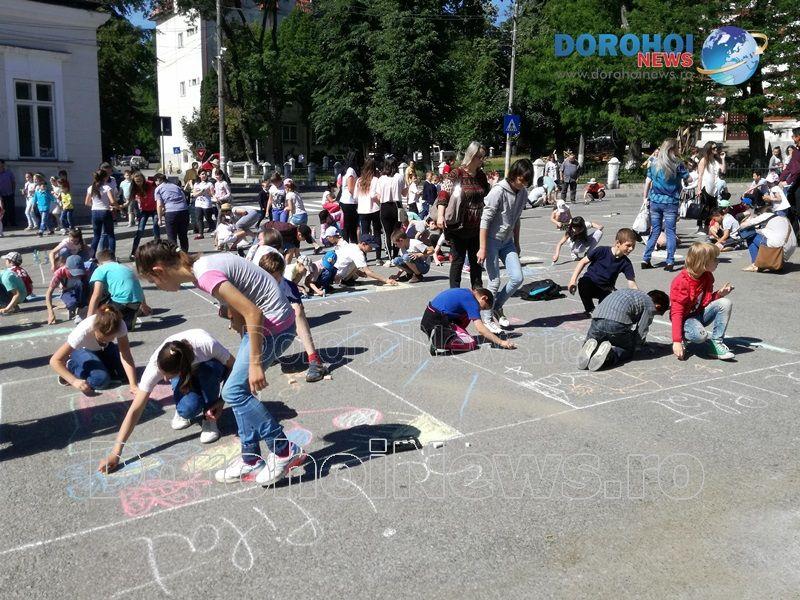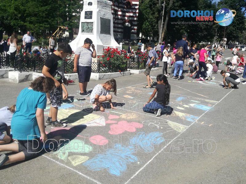 Copii de la diferite instituții de învățământul școlar și preșcolar din localitate s-au adunat, joi, 31 mai 2018, la ora 10, în fața Primăriei Municipiului Dorohoi, cu ocazia Zilei Internaționale a Copilului, pentru a-și pune în evidență talentul și inocența într-un concurs de desene pe asfalt, umplând centrul orașului de culoare și muzică.