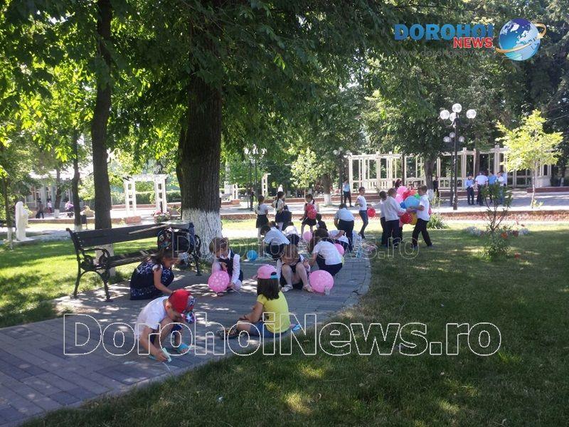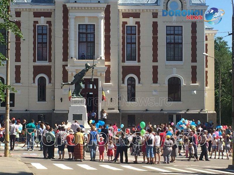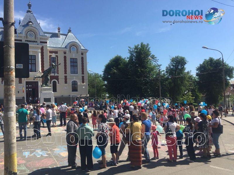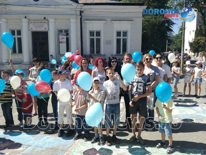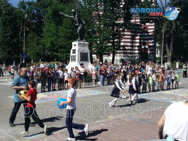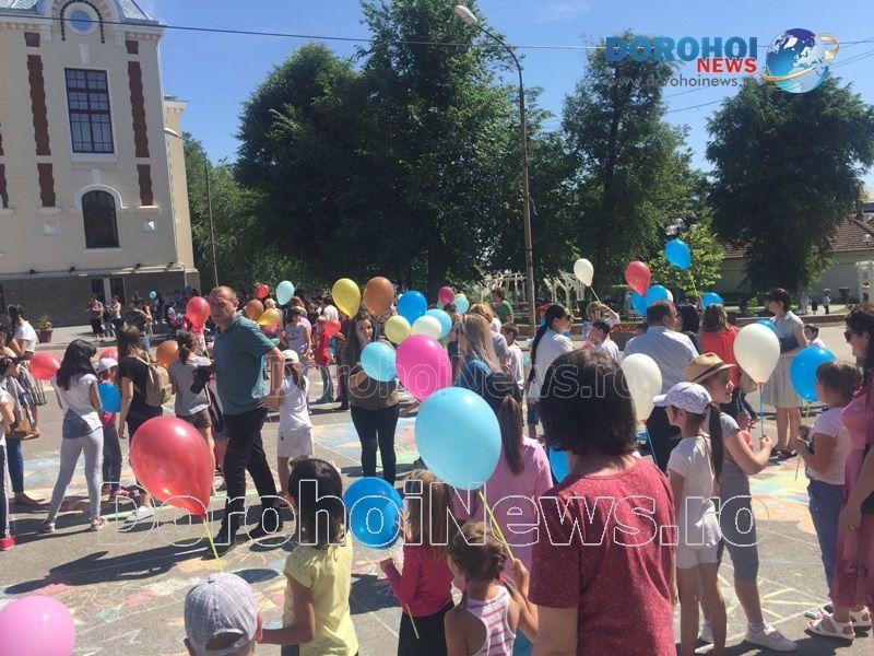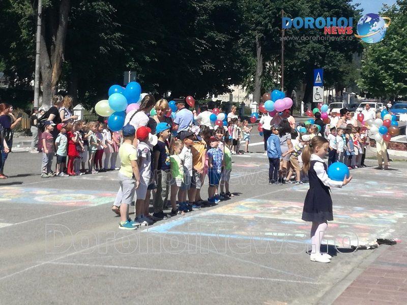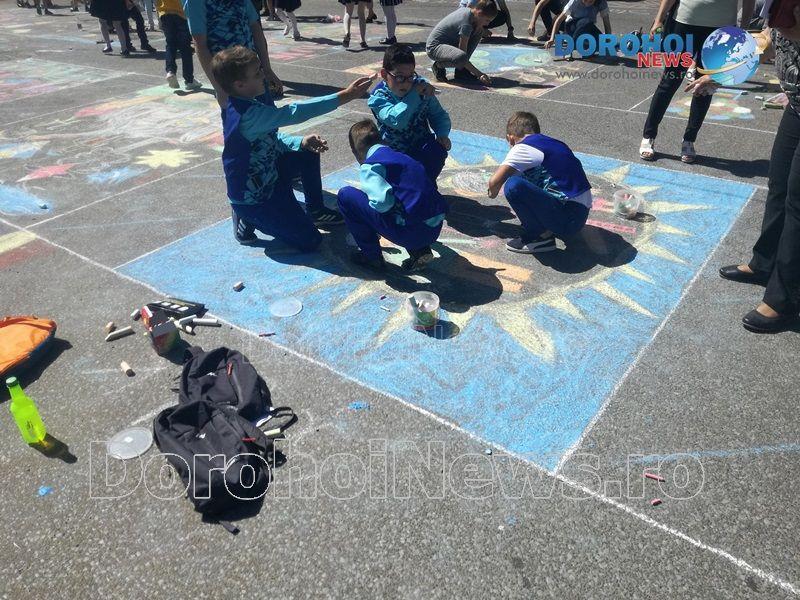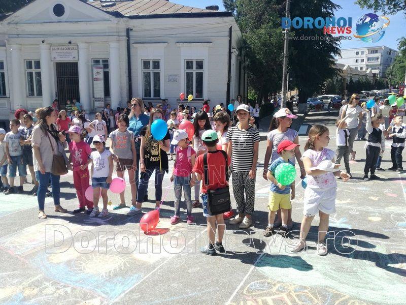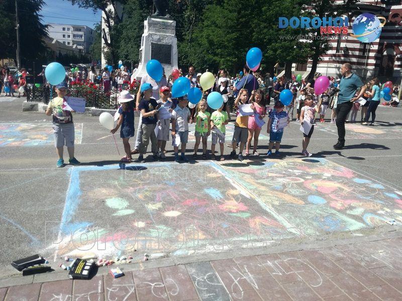 Copii de la diferite instituții de învățământul școlar și preșcolar din localitate s-au adunat, joi, 31 mai 2018, la ora 10, în fața Primăriei Municipiului Dorohoi, cu ocazia Zilei Internaționale a Copilului, pentru a-și pune în evidență talentul și inocența într-un concurs de desene pe asfalt, umplând centrul orașului de culoare și muzică.