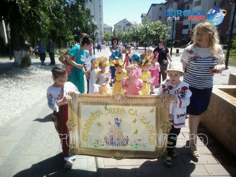 Copilașii au defilat pe Pietonalul „Grigore Ghica”, apoi au făcut un popas în fața fața primăriei unde au fost răsplătiți cu pachete cu dulciuri și fructe și baloane sau mingi colorate. De asemenea, au primit diplome și au avut posibilitatea să facă poze cu eroii lor: Spiderman, Mikey Mouse, Alba ca zăpada și Iepurașul. (Rebeca G.)