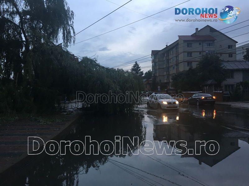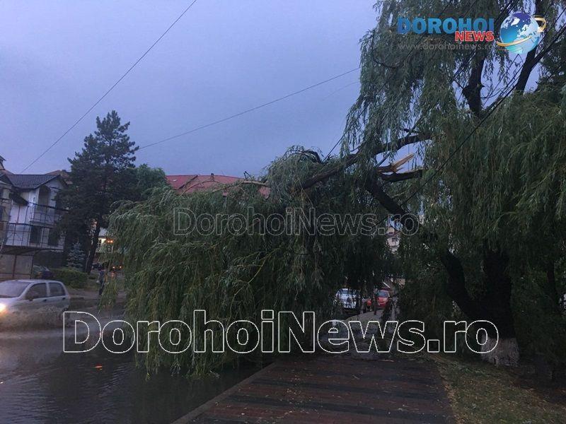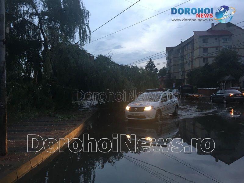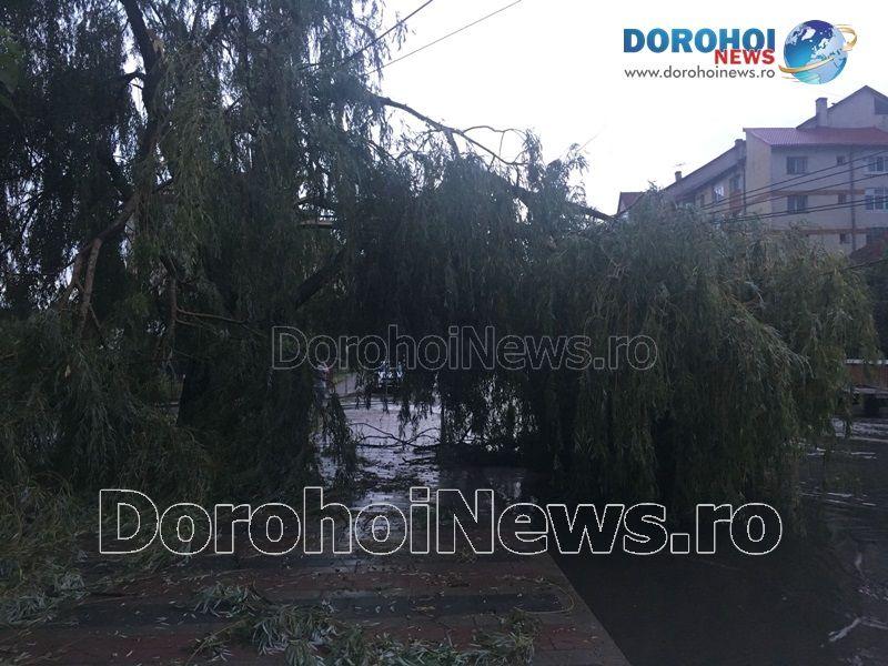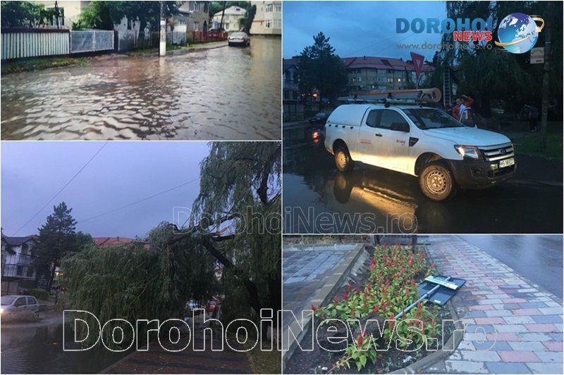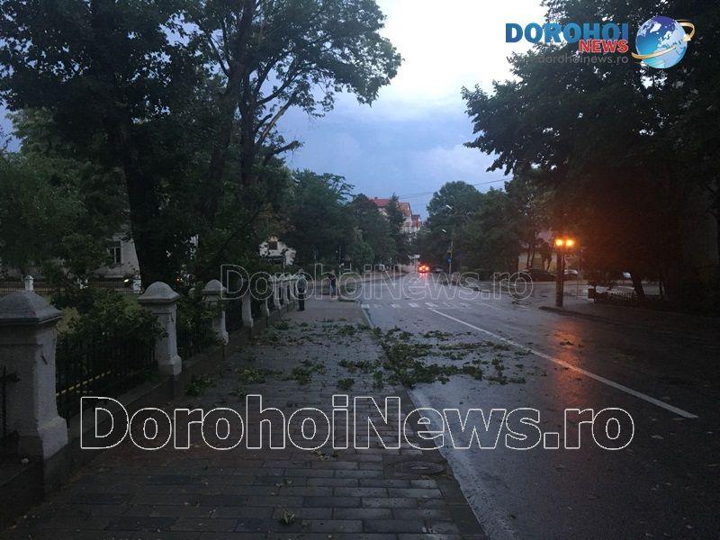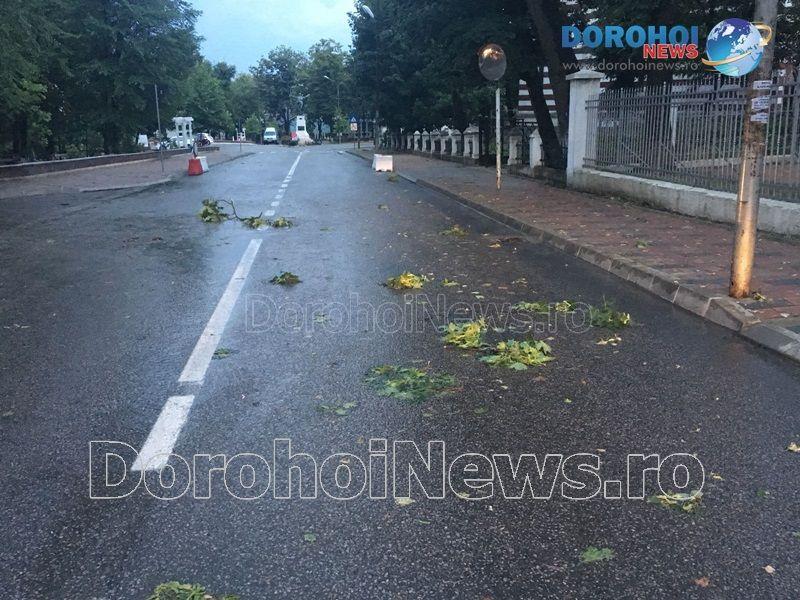 Vântul cu o intensitate foarte mare și ploaia torențială au afectat și municipiul Dorohoi, unde s-au înregistrat zeci de crengi rupte și doi copaci căzuți pe carosabil. Totodată, a fost afectat și un semn de circulație din centrul municipiului, iar apa a inundat mai multe străzi și câteva curți și grădini.