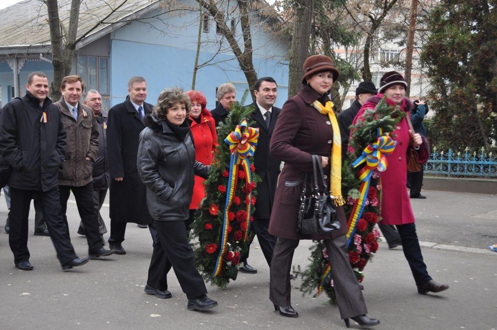 Manifestările au început miercuri, 1 Decembrie, în jurul ore 12, în piaţa din faţa fostei Primării unde în faţa a aproximativ 300 de persoane, un sobor de preoţi a oficiat o slujbă de pomenire a eroilor. Printre participanţi s-au regăsit Dorin Alexandrescu şi Alin Sorin Clim, primarul, respectiv viceprimarul Dorohoiului, senatorul Gheorgthe Marcu, reprezentanţi ai partidelor politice, Asociaţiei veteranilor de război, Poliţiei, Jandarmeriei, Pompierilor, unele unităţi de învăţământ şi a unor agenţi economici, care după slujba de pomenire au depus coroane de flori la Monumentul eroului necunoscut din Piaţa Primăriei.