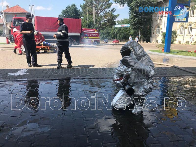 Detașamentul de Pompieri Dorohoi a desfășurat acest exerciţiu de cooperare pentru limitarea şi înlăturarea efectelor unor situaţii de urgenţă de amploare produse aici. În cadrul acestui exercițiu s-a simulat un cutremur urmat de incendiu violent cu o victimă. La fața locului s-au deplasat două autospeciale de capacitate mare cu apă și spumă, o autospecială de capacitate cu apă, o autospecială de primă intervenție și comandă, un UTV și o ambulanță SMURD. Totodată, au participat și două echipaje din cadrul Serviciului Voluntar pentru Situații de Urgență Dorohoi și a Poliției Locale Dorohoi.