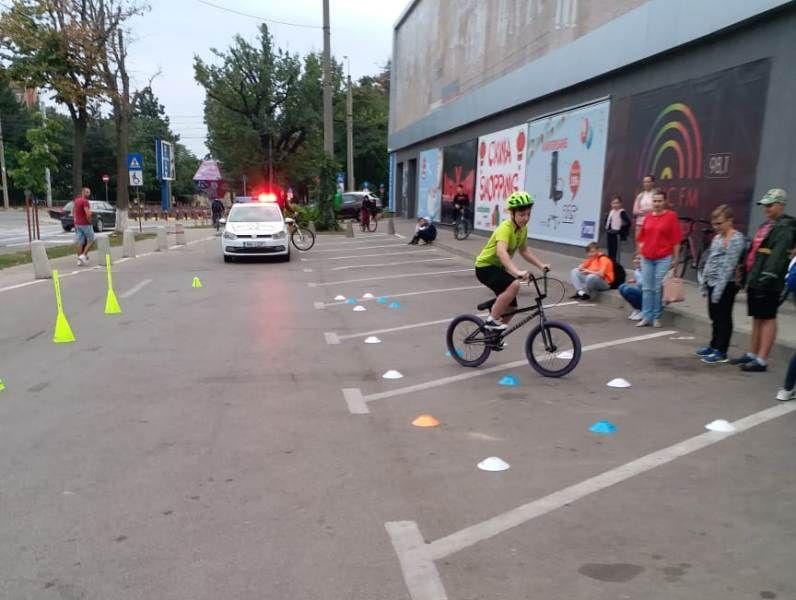 Cei mici au participat apoi şi la o probă practică-un traseu cu obstacole, unde şi-au demonstrat îndemânarea în conducerea bicicletelor, la final fiind premiaţi de către sponsorul evenimentului.