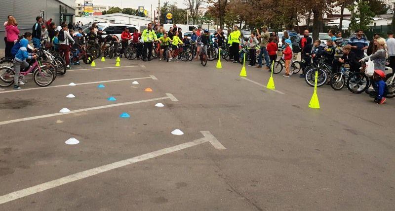 Poliţiştii rutieri, în parteneriat cu reprezentanţii Magazinului Decathlon Botoşani au organizat în parcarea unui centru comercial o activitate de educaţie rutieră, dedicată celor mici.
