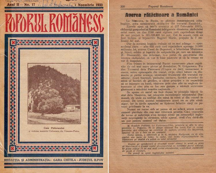 Un adevărat scotocitor al arhivelor istorice, profesorul dorohoian Ilarion Mandachi, unul din iniţiatorii binecunoscutului proiect „Amintiri despre trecut – Dorohoiul de altădată”, ne-a oferit, de această dată, din spaţiul bibliotecii sale, o revistă care are ca dată de apariţie – 1 noiembrie 1933, purtând titlul „Poporul Românesc”, apărută în altă zonă a ţării şi având ca redacţie şi administraţie -„Gara Chitila – judeţul Ilfov”.