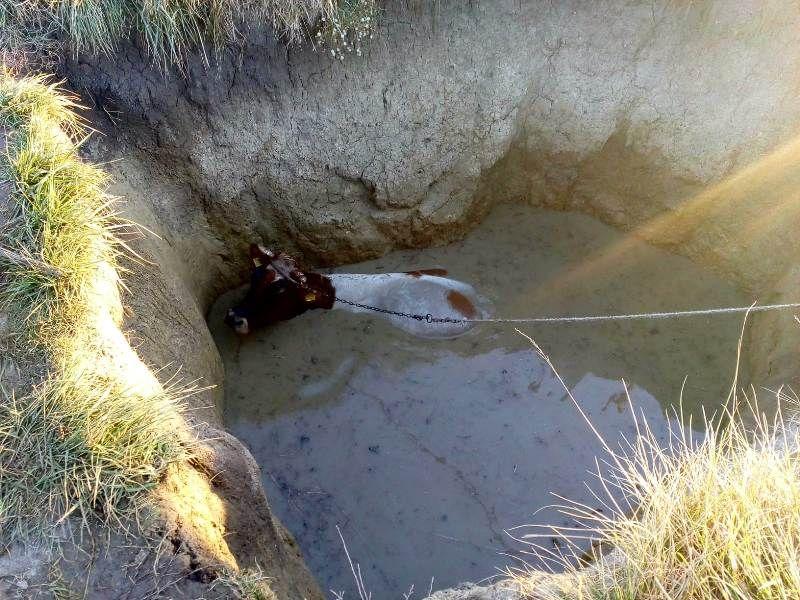 Misiune dificilă a pompierilor de la Garda de Intervenție Ștefănești care au fost solicitați să intervină pentru a salva o bovină căzută într-o groapă, adâncă de cca. cinci metri, de pe raza comunei Mihălășeni.