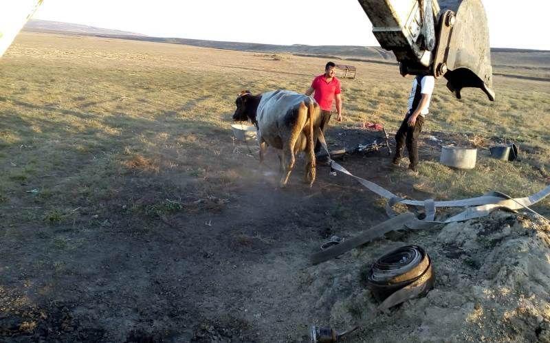Pompierii au legat animalul cu mai multe furtune și cu ajutorul unui utilaj, pus la dispoziție de primărie, au reușit să îl scoată din captivitate. Intervenția a durat cca. jumătate de oră.