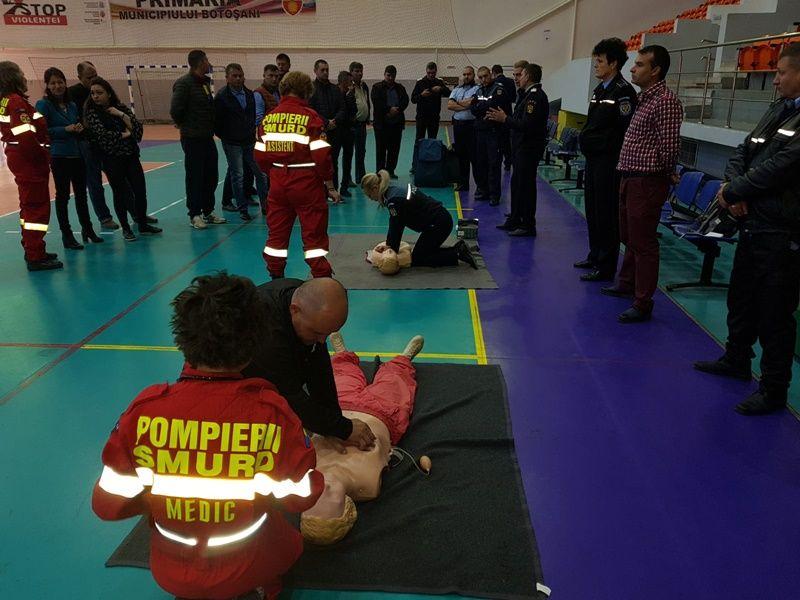 Peste 500 de polițiști, polițiști de frontieră, polițiști locali și jandarmi, elevi, dar și simpli cetățeni au participat, astăzi, la lecțiile de acordare a primului ajutor care au fost predate de medicii si asistenții UPU - SMURD împreună cu paramedicii ISU Botoșani.