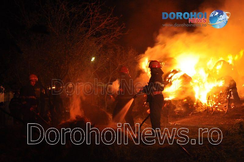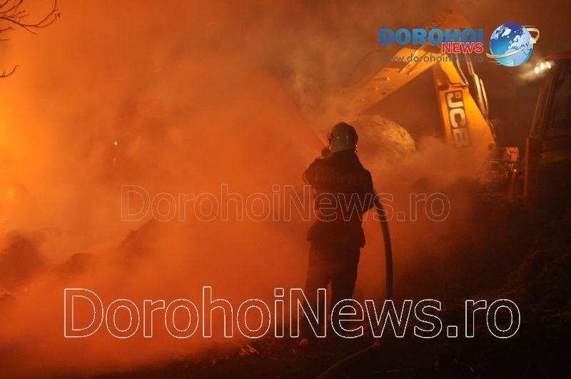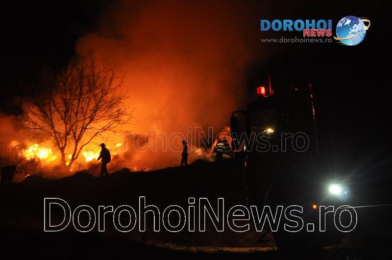 La sosirea gărzii de intervenție, incendiul se manifesta cu violență la un depozit de plante furajere, arzând peste 50 de tone de furaje. Pompierii dorohoieni se luptă de mai bine de două ore (n.r. 00:30) încercând să elimine toate focarele și să prevină reaprinderea sau extinderea focului.