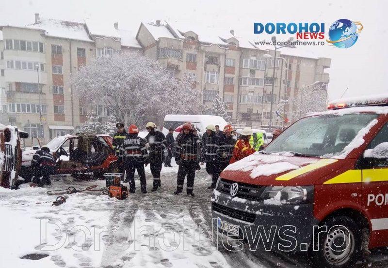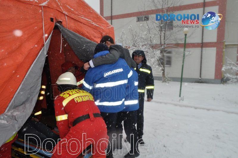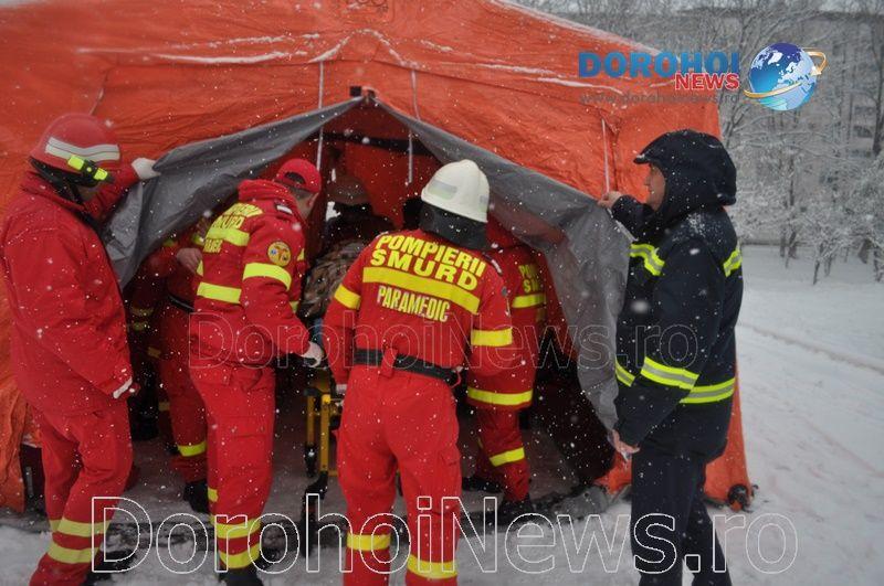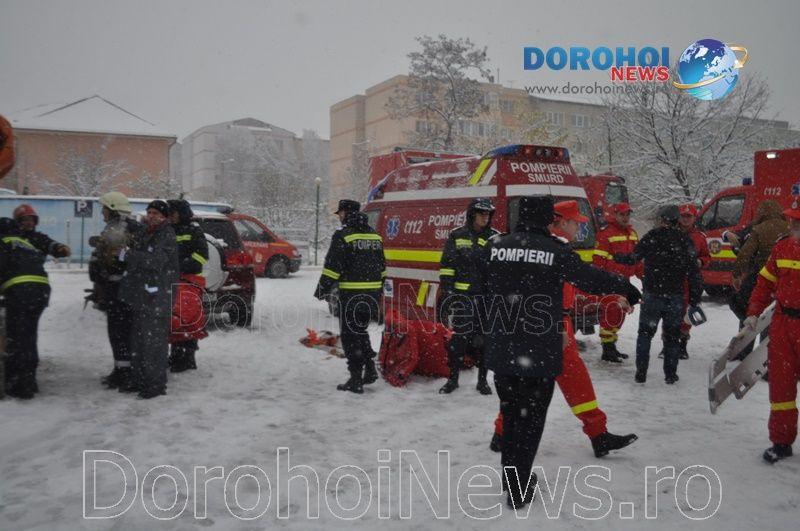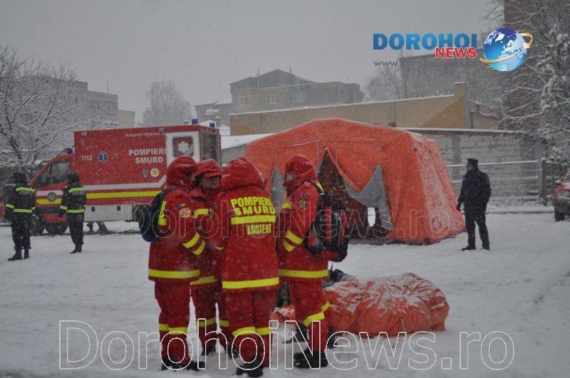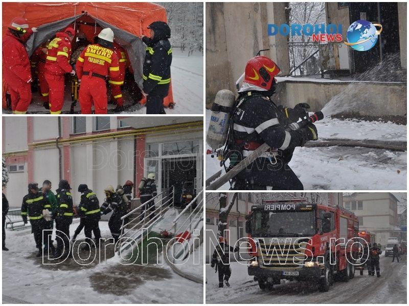 Inițial, s-a intervenit la un accident rutier produs în parcarea supermarketului Penny Dorohoi, accident soldat cu două victime încarcerate. Între timp, autoritățile su fost puse în alertă după ce, la Spitalul Municipal Dorohoi, s-a produs un incendiu la centrala termică, cu pericol de propagare la stația de oxigen, și un incendiu la etajul doi al secției de interne, existând șapte victime. La intervenție a participat și câinele de căutare și salvare din cadrul ISU Botoșani.