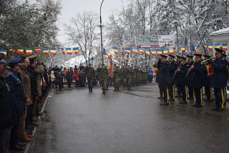 Cu aceleaşi gânduri s-au adunat astăzi, în Piaţa Primăriei, sute de dorohoieni care au participat la ceremoniile religioase şi militare dedicate resfinţirii Monumentului, după o amplă reabilitare. Pe lângă prezenţa plutoanelor de militari de la Garnizoana Botoşani, Inspectoratul Judeţean pentru Situaţii de Urgenţă, Inspectoratul Judeţean de Jandarmi şi ai Serviciului Teritorial al Poliţiei de Frontieră, la Dorohoi au ajuns şi membrii Muzicii Militare a Brigăzii 15 Mecanizată „Podu Înalt” - Iași. După ce prefectul Dan Şlincu a primit onorul şi a trecut în revistă militarii, col.(r) Doru Pogoreanu a prezentat o scurtă istorie a Monumentului “Ostaşul roman în atac”, apoi a avut loc o slujbă religioasă de sfinţire a monumentului, oficiată de preoţi dorohoieni şi de preotul militar Ştefan Grădinaru de la Garnizoana Botoşani.