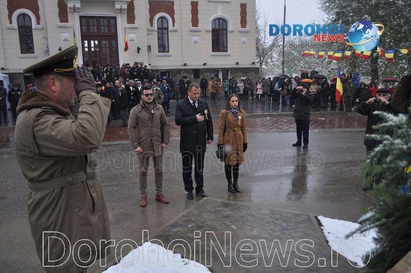 Evenimentul s-a desfășurat miercuri, 21 noiembrie 2018, în fața Primăriei din Dorohoi. Activitățile au debutat la ora 12:00 cu primirea onorului militar de către prefectul județului Dan Șlincu. Apoi a fost oficiată o slujbă de resfințire a Monumentului „Ostaşul român în atac”, urmată de discursurile primarului municipiului Dorohoi, Dorin Alexandrescu, a prefectului Dan Şlincu, a vicepreşedintelui Consiliului Judeţean, Dorin Birta și a senatorului Lucian Trufin.