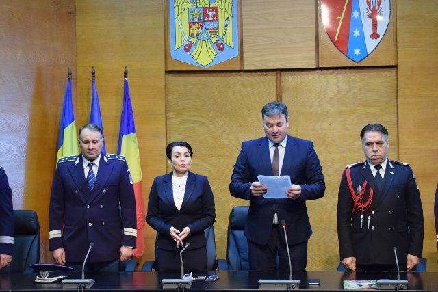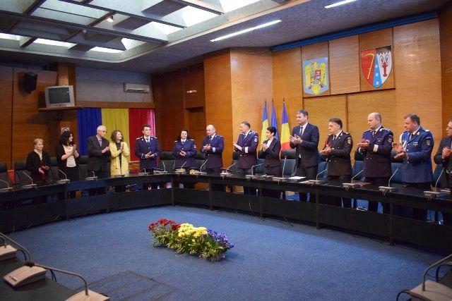 La ceremonie au participat prefectul Dan Şlincu şi subprefectul Daniela Lozneanu, şefii serviciilor şi al Cancelariei din Instituţia Prefectului şi şefii structurilor MAI din judeţ.