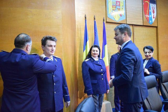 Astfel, cu ocazia Zilei Naţionale a României, au fost avansaţi în gradul profesional următor, înaintea îndeplinirii stagiului minim, subcomisarul Popovici Valerian Alin, şeful Serviciului Public Comunitar de Eliberare şi Evidenţă a Paşapoartelor Simple, care a devenit astfel comisar de poliţie, agentul şef adjunct Băndărică- Isac Liliana- Doiniţa, tot de la SPCEEPS, care a devenit astfel agent şef, precum şi agentul principal Iurieţ Mircea Iulian, de la SPCRPCIV, care a devenit agent şef adjunct.