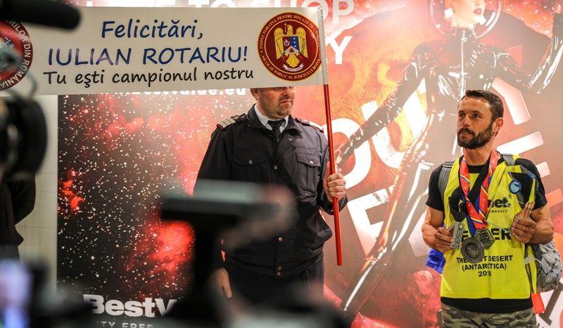 Plutonierul major Iulian Rotariu, pompierul din Botoșani care a dus pe 1 Decembrie drapelul României inscripționat cu „România 100”, în Antarctica, la ultramaratorul The Last Desert, a ajuns la Botoișani în jurul orei 10:30, după ce s-a clasat pe locul al doilea la unul dintre cele mai grele maratoane din lume. El a fost așteptat de prefectul Dan Șlincu, șeful ISU Botoșani, Cristian Amarandei, șeful Poliției Botoșani, Viorel Șerbănoiu, șefa UPU Smurd Ramona Guraliuc, antrenoarea sa Dana Vieru, dar și alți șefi de instituții. Familia sa și colegii au și ei prezenți. Iulian a fost aplaudat de zeci de persoane prezente la evenimentul de primire, a primit flori și nenumărate felicitări.
