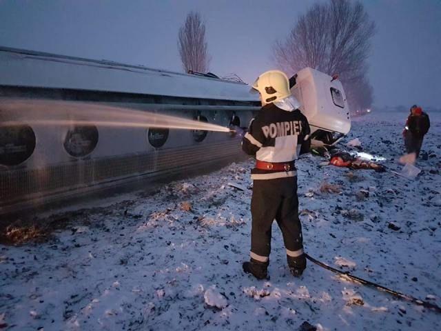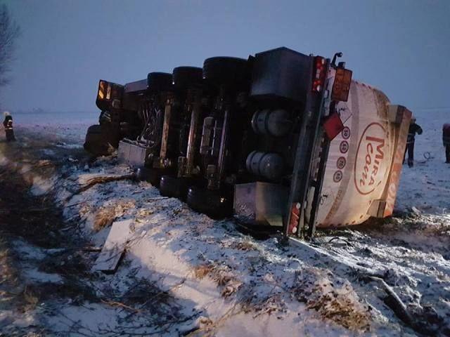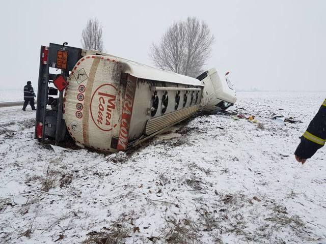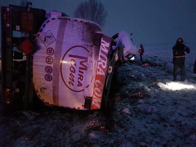 Pentru coordonarea acțiunilor de intervenție la fața locului s-a deplasat și grupa operativă a inspectoratului. Conducătorul autocisternei a primit îngrijiri medicale de la pompierii paramedici, însă a refuzat transportul la spital. Sursa: desteptarea.ro