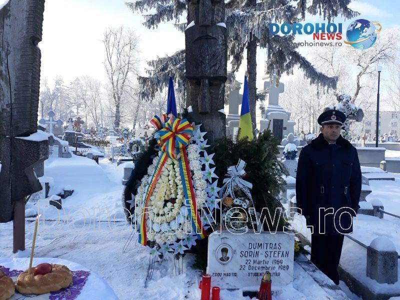 Eroii revoluţiei din 1989 au fost comemoraţi sâmbătă, 22 decembrie 2018, la Dorohoi prin depuneri de coroane la mormântul eroului Sorin Dumitraș, împușcat în 22 decembrie 1989.