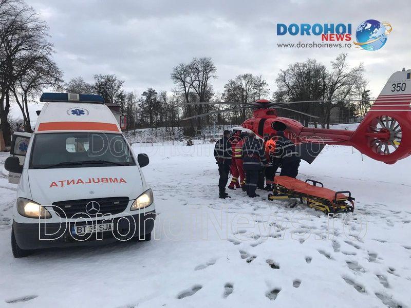 Aparatul de zbor a aterizat pe stadionul „1 Mai” din Dorohoi, în jurul orei 14:10, de unde l-a preluat pe tânăr, pentru al transporta la Iași. (Andrei B.)