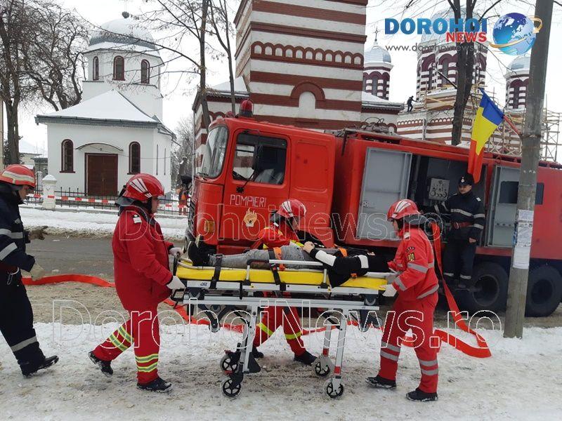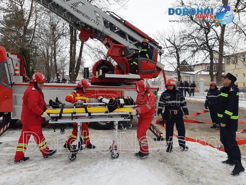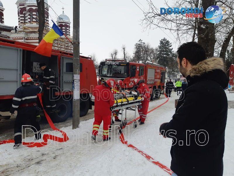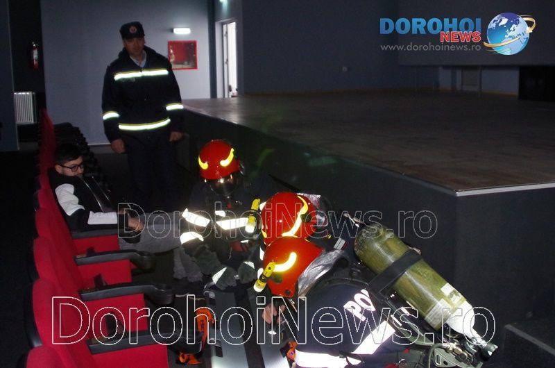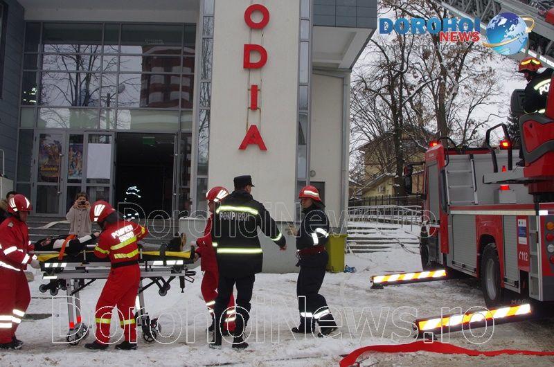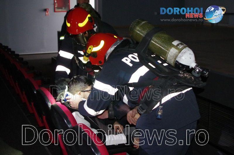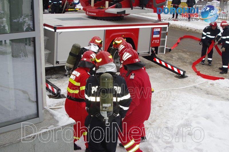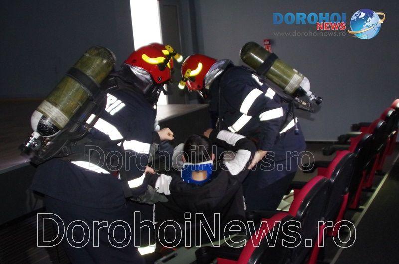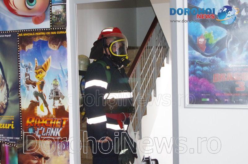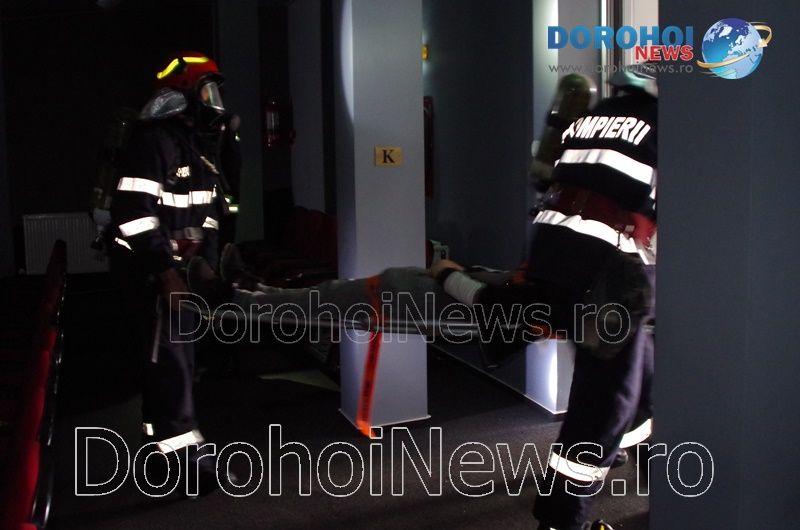 Acest exercițiu a fost unul de verificare a viabilității planurilor operative în cadrul producerii unor incendii la astfel de obiective, respectiv obiective cu aglomerări de persoane. În urma incendiului s-a găsit o persoană intoxicată cu dioxid de carbon care a avut nevoie de îngrijiri medicale. Acesta a fost preluat de pompieri și transportat la ambulanța SMURD de unde a fost trimis la UPU Dorohoi. La acest exercițiu a mai participat un echipaj din cadrul SVSU Dorohoi și un echipaj din cadrul Poliției Dorohoi. (Andrei B.)