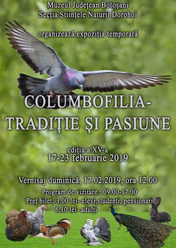Muzeul de Științele Naturii Dorohoi, cu sediul în Dorohoi, str. Al. I. Cuza nr. 43, organizează în perioada 17 – 23 februarie 2019 expoziția temporară ”Columbofilia – tradiție și pasiune”, ediția a XV-a.