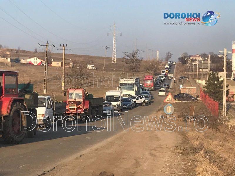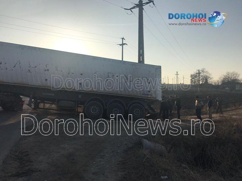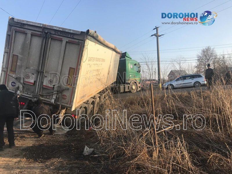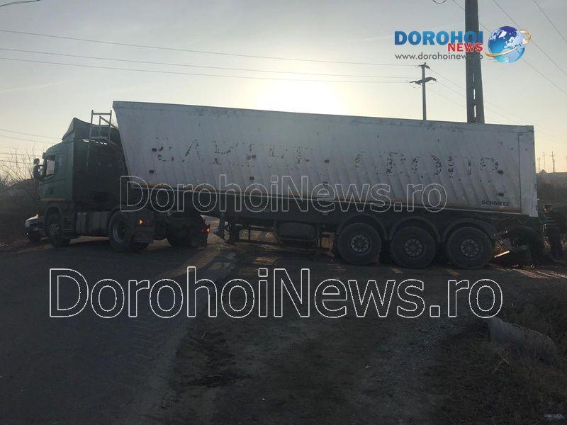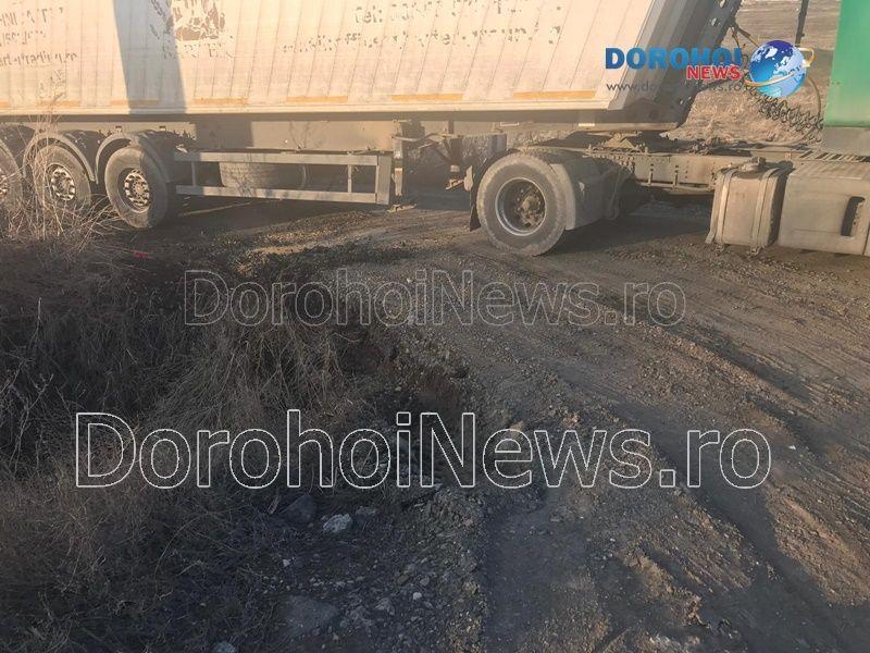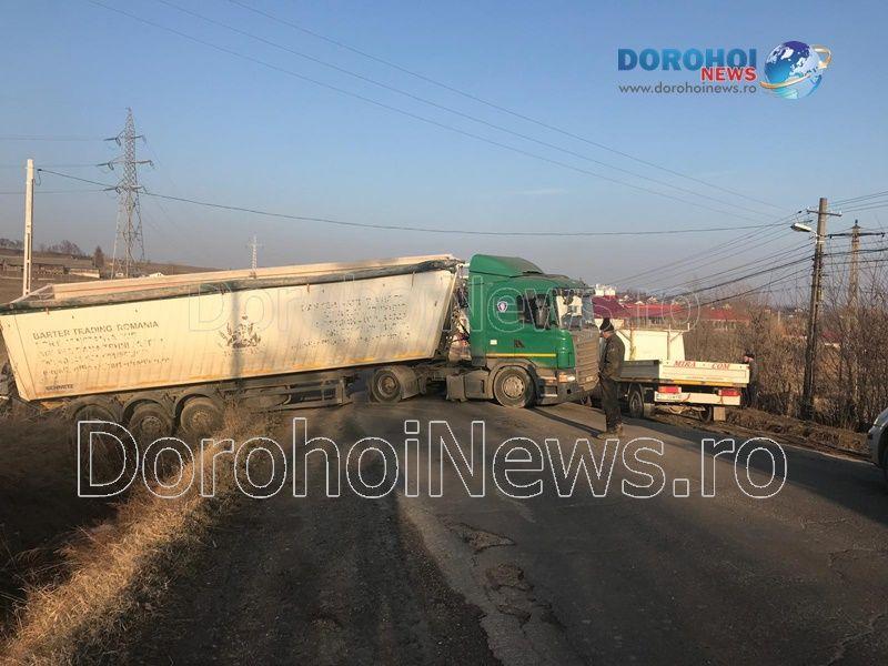 Drumul național 29A a fost blocat pe strada Sfântul Ioan Românul din municipiul Dorohoi, la ieșirea dintr-un depozit de cereale situat vis-a-vis de stația de betoane a Miracom. Din primele informații se pare că un camion de transport cereale, înmatriculat în Constanța, a făcut prea strâns virajul la dreapta pentru a se îndrepta către centrul municipiului Dorohoi și a intrat cu trei dintre roți în canalul de pe marginea drumului. Acesta a blocat circulația pentru mai bine de jumătate de oră, formându-se cozi de mașini pe ambeșe sensuri de circulație.