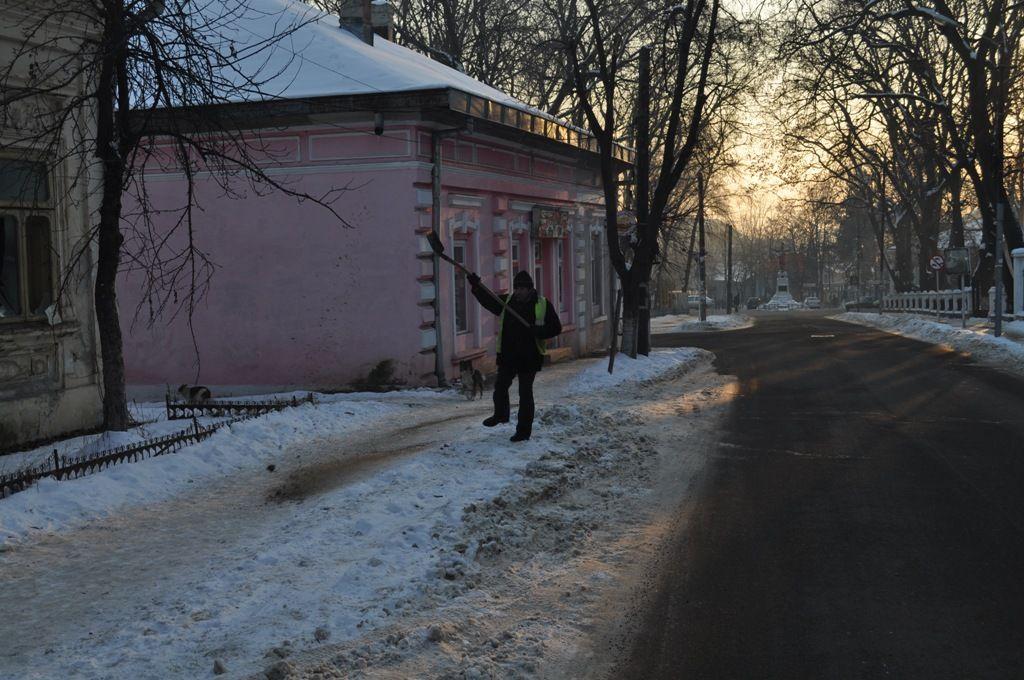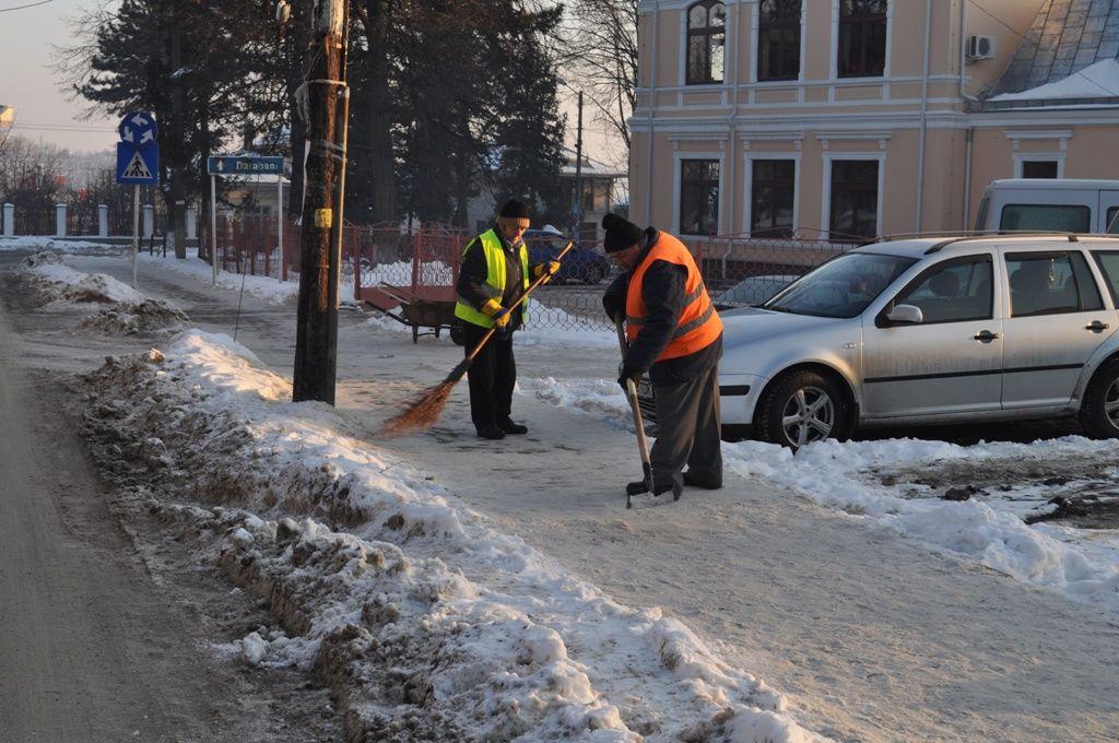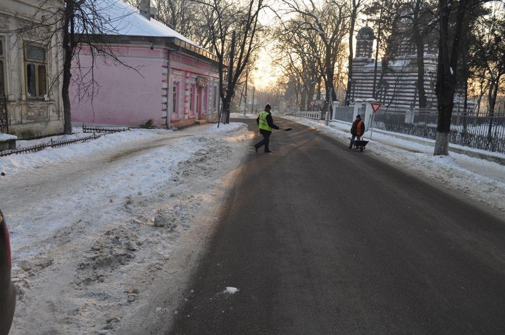 Inca de la primele ore ale diminetii se putea observa interesul societatii de Servicii Publice Locale care a scos in strada mai multe echipe la curatat gheata si zapada de pe trotuare si pentru a imprastia material antiderapant.