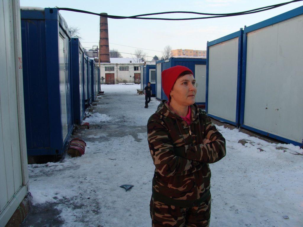 In dimineata zilei de 4 ianuarie am facut o vizita la tabara de sinistrati situata pe str. Dumbrava Rosie. La intrare ne intampina un brad saracacios impodobit dar care a facut ca simbolul sarbatorilor de iarna sa fie prezent in acest cartier de module, printre copaci rasarea soarele care, metaforic vorbind, aducea o raza de speranta in sufletele inghetate ale celor 224 de persoane care mai sunt acum cazate la module din totalul de peste 270 cati au fost in vara.