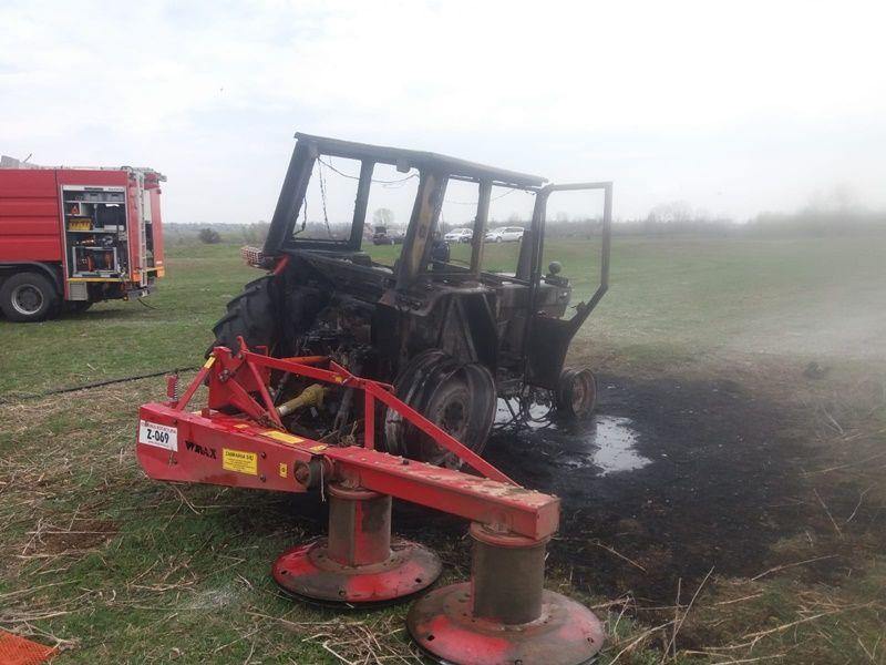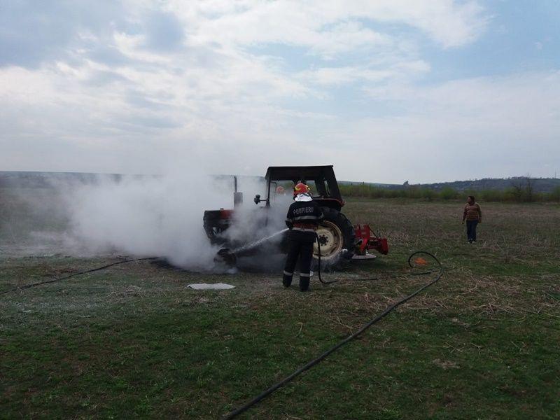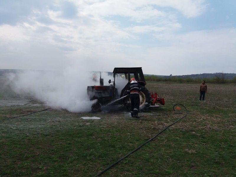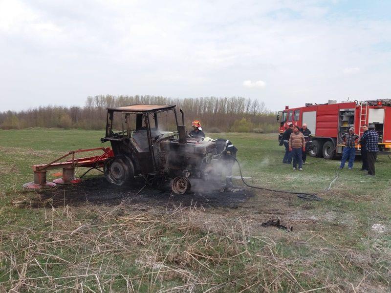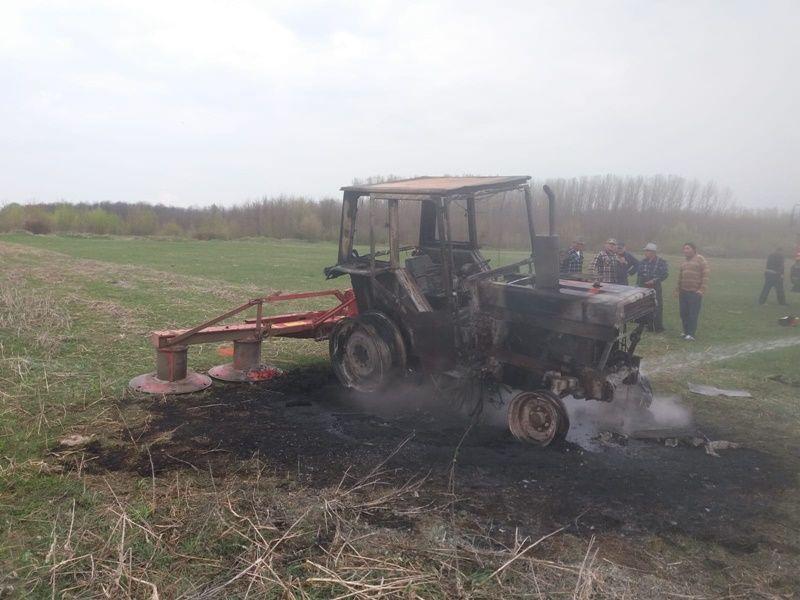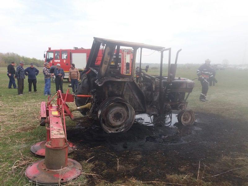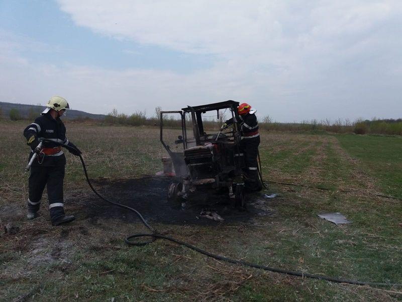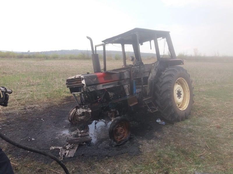 Un tractor aflat pe un teren agricol a ars aproape în totalitate în cursul zilei de miercuri 10 aprilie.