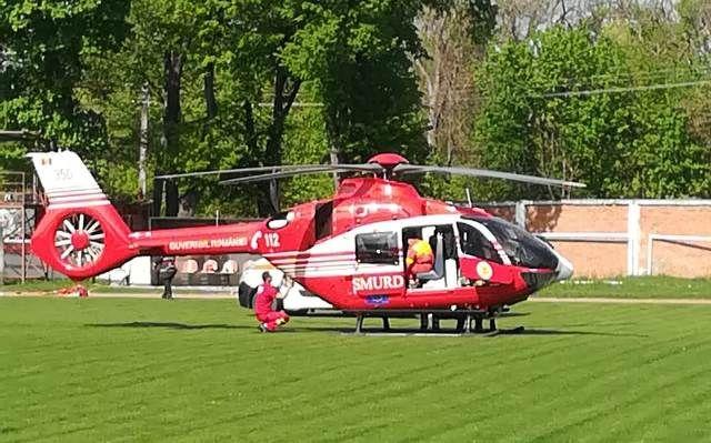 Aparatul de zbor a aterizat pe stadionul „1 Mai” din Dorohoi, în jurul orei 15:50, de unde l-a preluat pe tânăr, pentru a-l transporta la Iași. (Andrei B.)