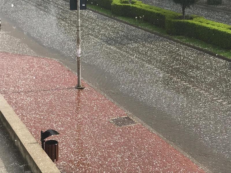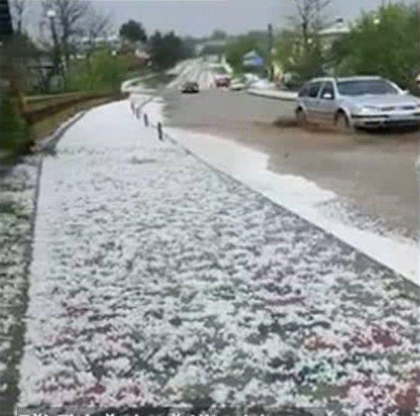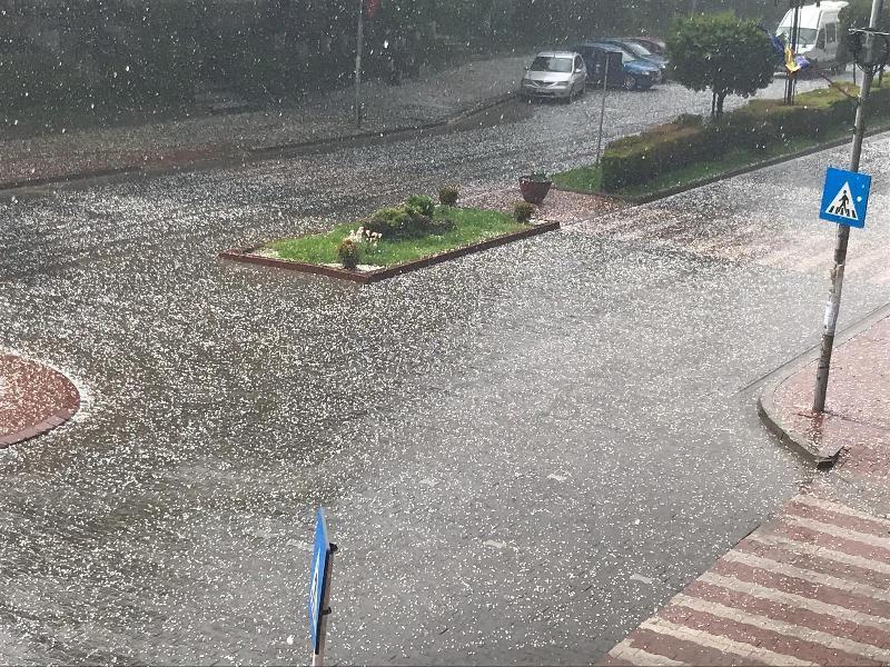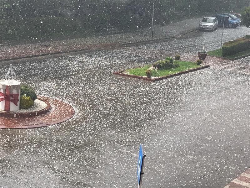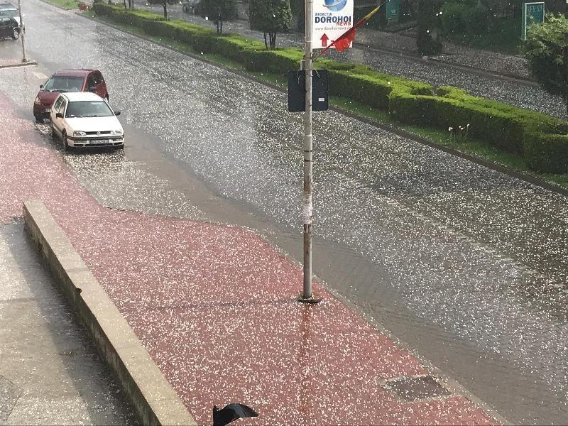 Furtunile nu se dau duse. Un drum din Dorohoi s-a transformat în lac după o ploaie torențială. A căzut și grindină, iar în câteva minute, trotuarele și curțile oamenilor s-au umplut cu gheață.