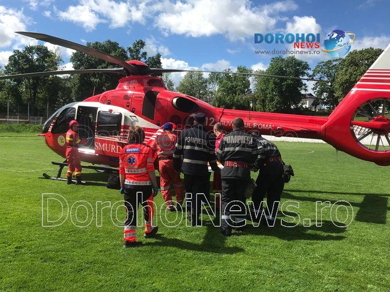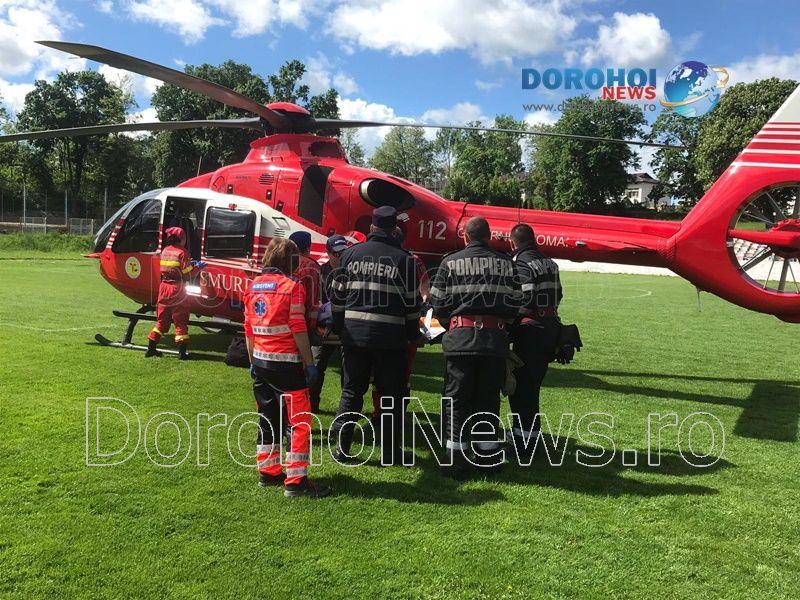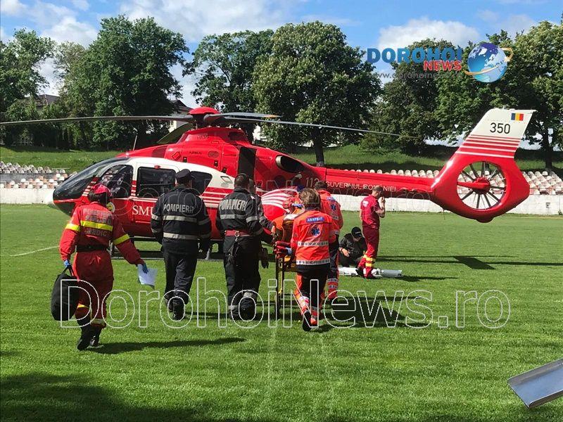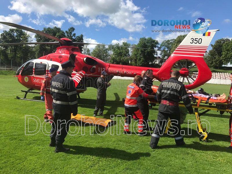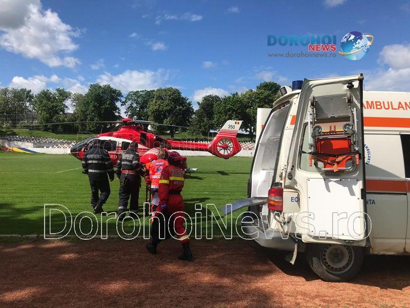 Aparatul de zbor a aterizat pe stadionul „1 Mai” din Dorohoi, în jurul orei 10:15, de unde a preluat-o pe femeie, pentru a o transporta la Iași. (Andrei B.)