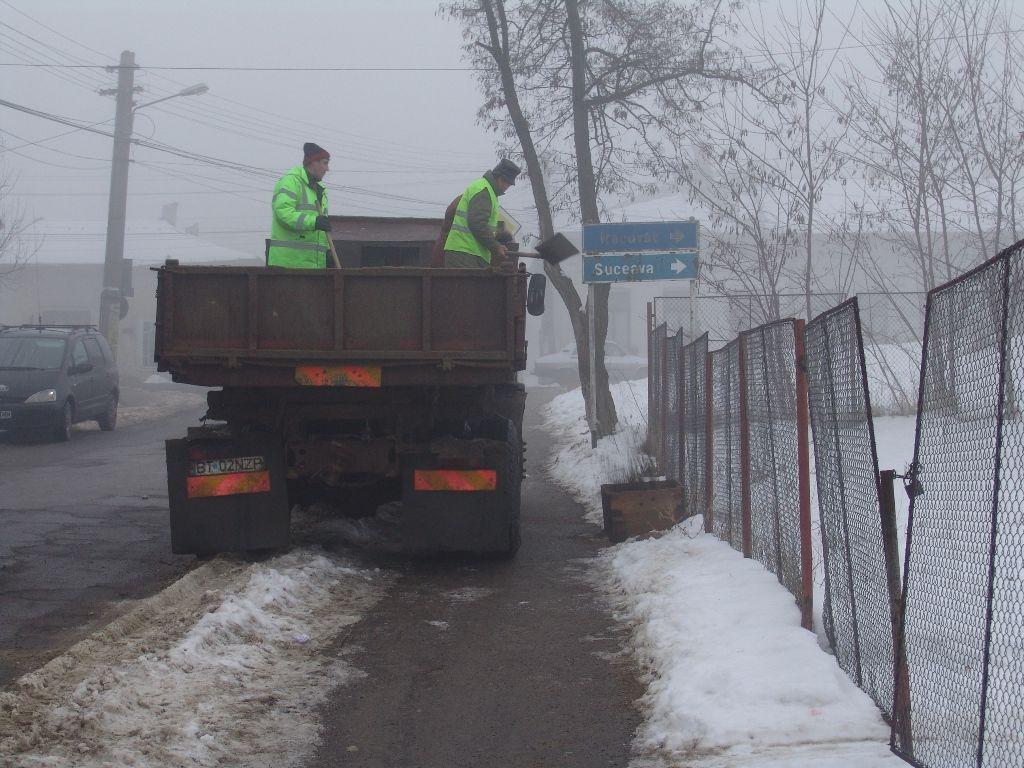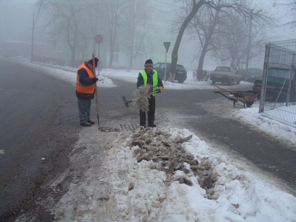 Chiar de la primele ore ale diminetii de luni 10 ianuarie, angajati ai societatii de Servicii Publice Locale (SPL) erau in diferite zone ale orasului curatand ghiata si zapada de pe gurile de scurgere (pentru a permite apei provenite din dezghetul zapezii sa se scurga), curatau zapada si gheata din zona trecerilor de pietoni si intersectii si deasemenea au fost completate laditele cu nisip din zonele de risc.