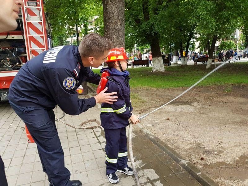 Echipați cu costume de intervenție, micii pompieri au deschis o ușă, au trecut printr-un tunel, au salvat ursulețul sau cățelul de pe tobogan și i-au predat voluntarilor din cadrul programului național „Salvator din pasiune”, au alergat printre jaloane și au stins un incendiu imaginar.