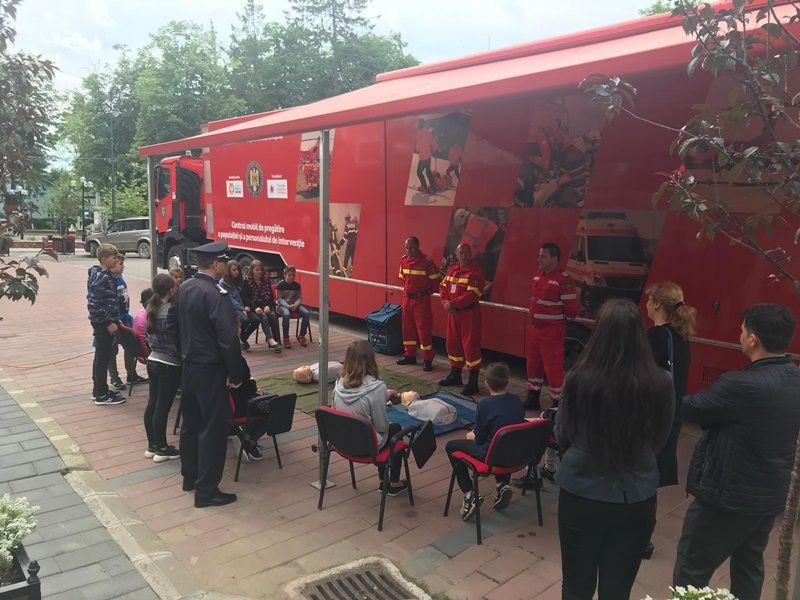 Activitățile se vor desfășura în cele cinci zile, în intervalul orar 09.00 – 18.00. Centrul mobil este construit pe structura unui tir, are o sală de şcolarizare cu o capacitate de 40 de persoane şi este dotat cu toate echipamentele medicale de prim ajutor, dispozitive portabile, inclusiv simulatoare, ce permit instruirea eficientă a cursanţilor.