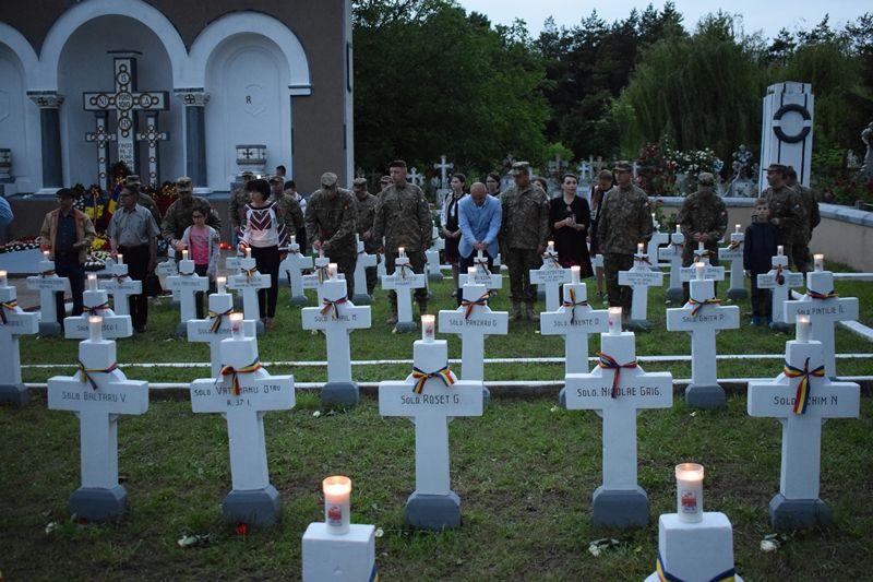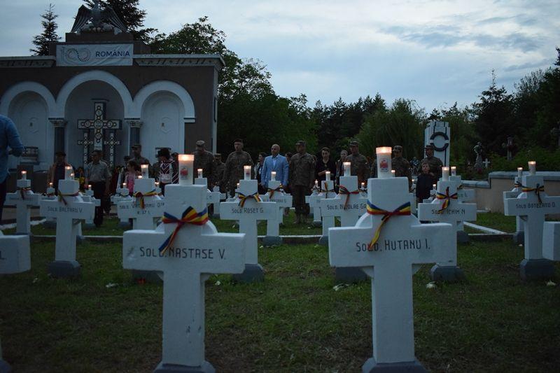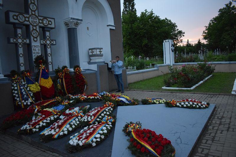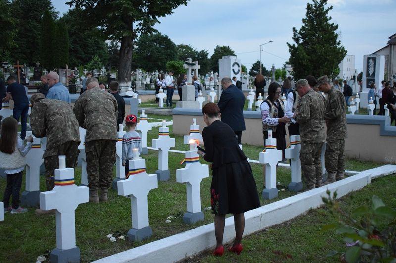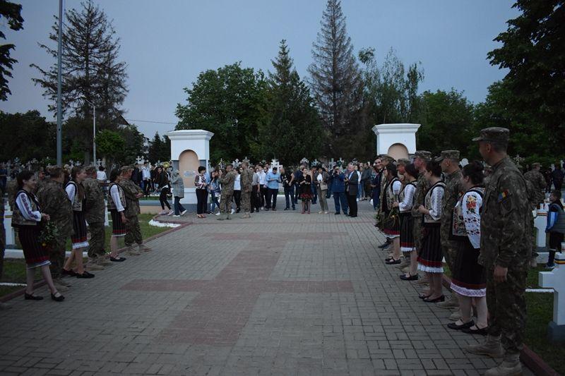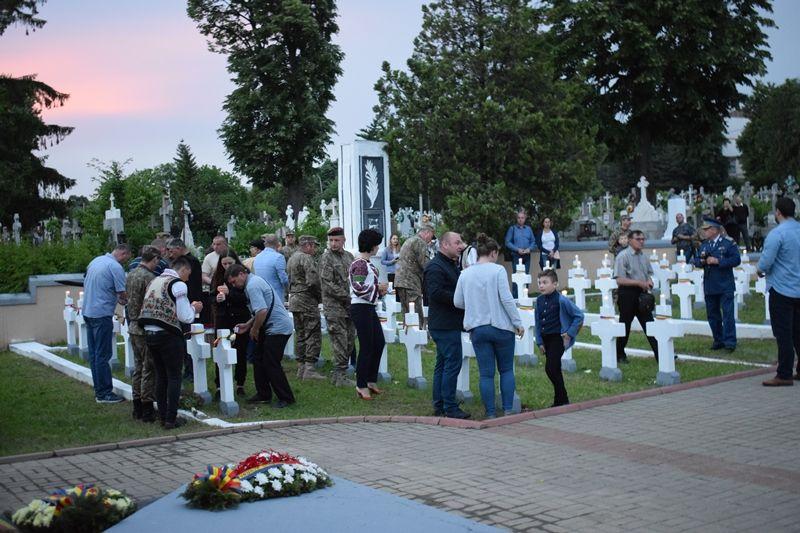 S-a sunat „Stingerea” în Cimitirul Eroilor, în seara de Înălţare, în interpretarea trompetistului Robert Mironică de la Filarmonica Botoşani.