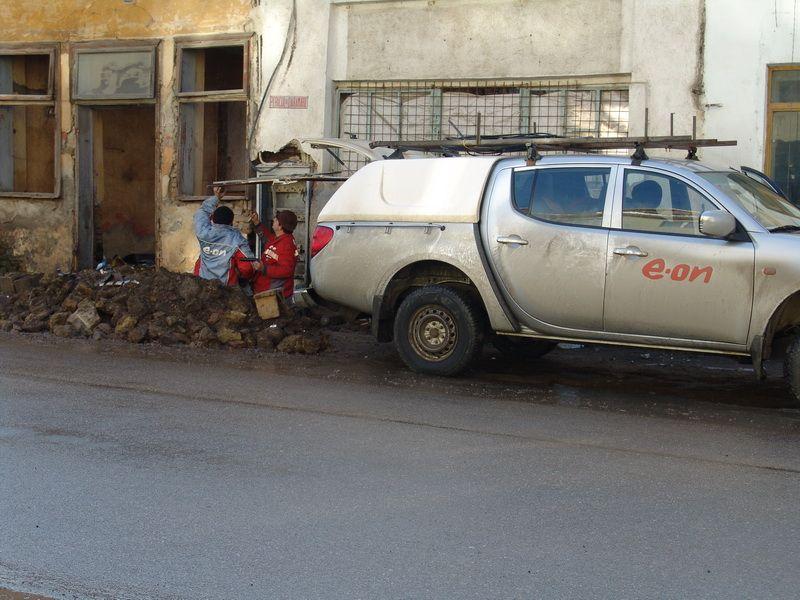 Mentionam faptul ca, inca de la inceperea lucrarilor de demolare, cei de la E-ON au fost alaturi de lucratorii societatii de Servicii Publice Locale si au intrerupt furnizarea de energie electrica pentru a evita posibilele accidente nedorite produse prin electrocutare. (DorohoiNews.ro)