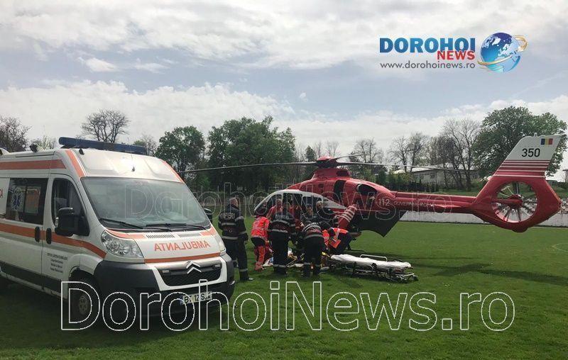 Aparatul de zbor a aterizat duminică, 21 iulie 2019, pe stadionul „1 Mai” din Dorohoi, de unde l-a preluat pe tânăr, pentru a-l transporta la Iași. (Andrei B.)