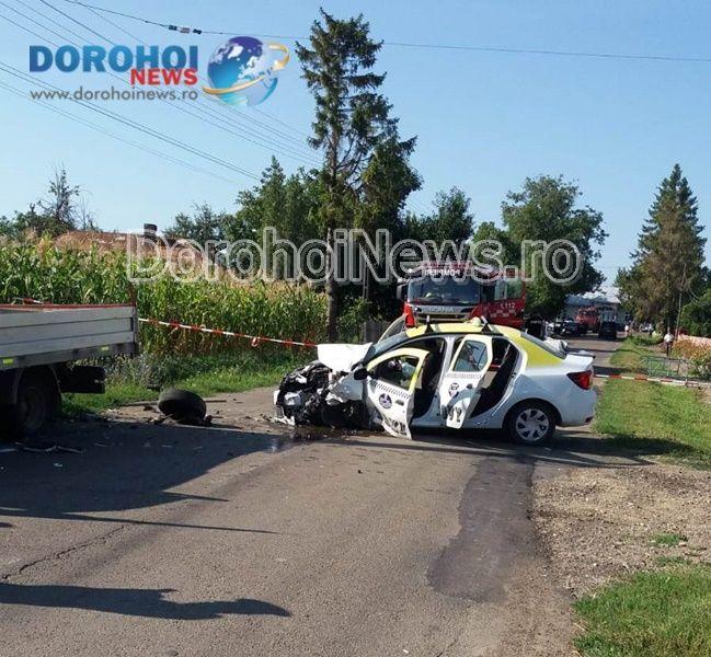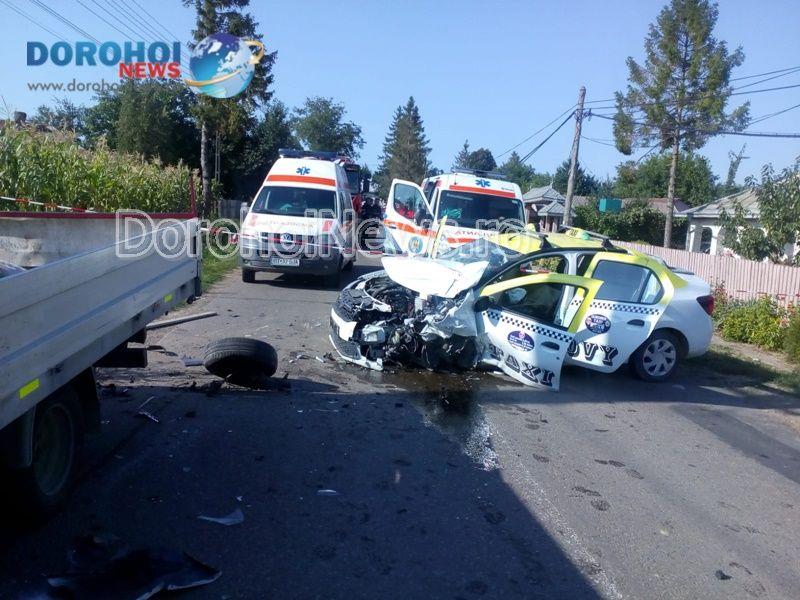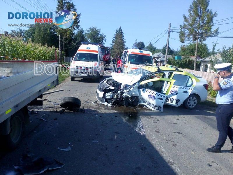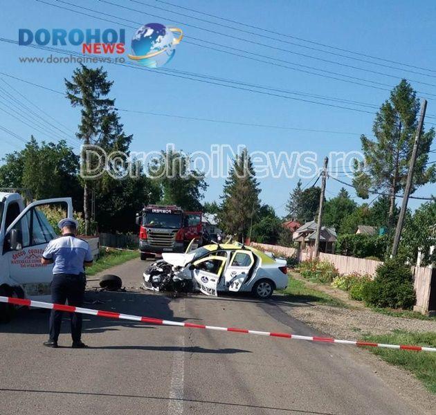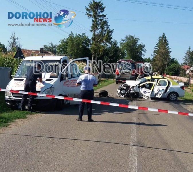 Un accident soldat cu trei victime a avut loc, sâmbătă dimineață, pe drumul județean DJ 292, pe raza localității Broscăuți. Un taxi a intrat în coliziune cu o camionetă, după ce taximetristul a intrat pe contrasens.