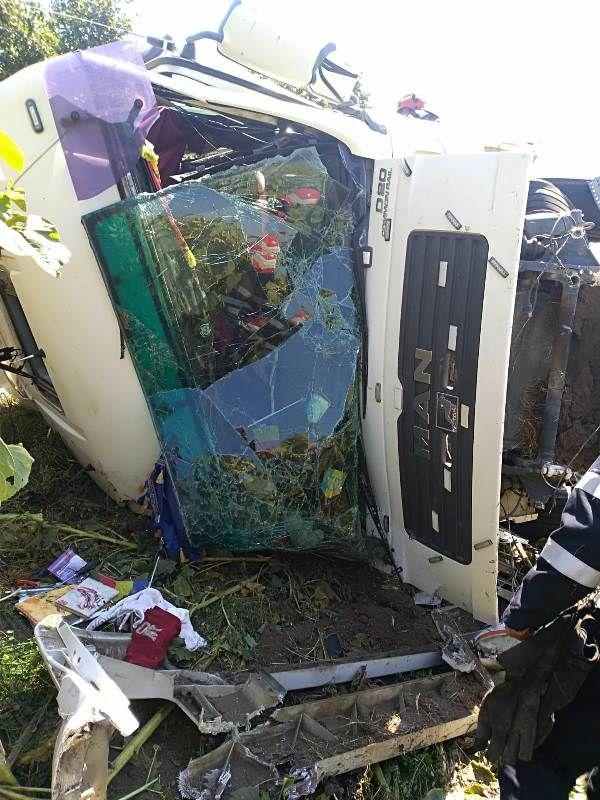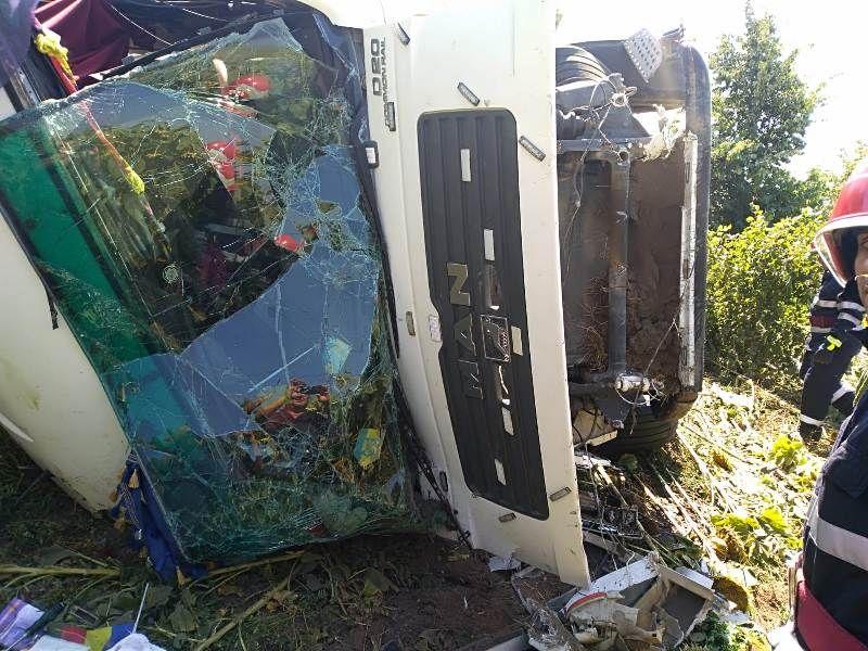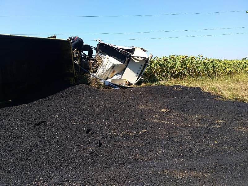 Un accident rutier a avut loc, marți după-amiază. Un camion încărcat cu bitum s-a răsturnat între localitățile Stânca și Havârna, pe DJ 293.